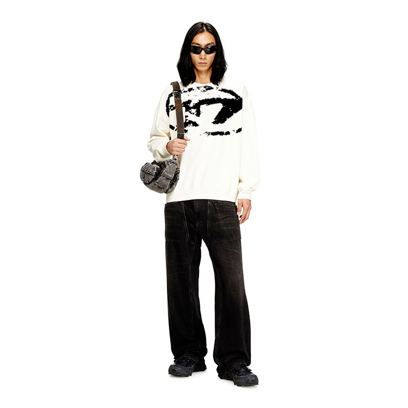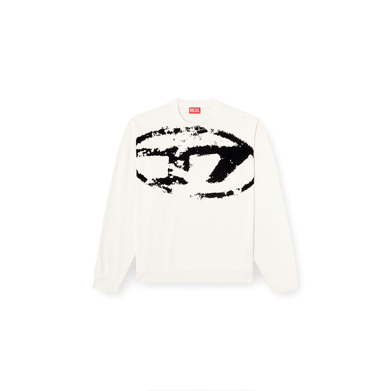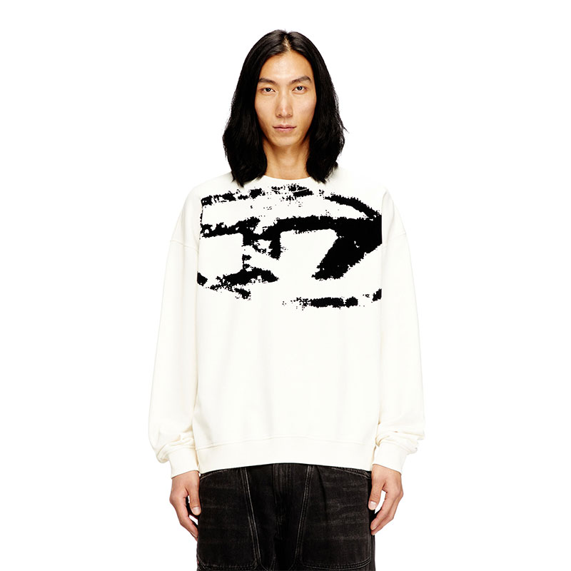Diesel Men Sweatshirt with distressed flocked logo White/Black A130510DQAK