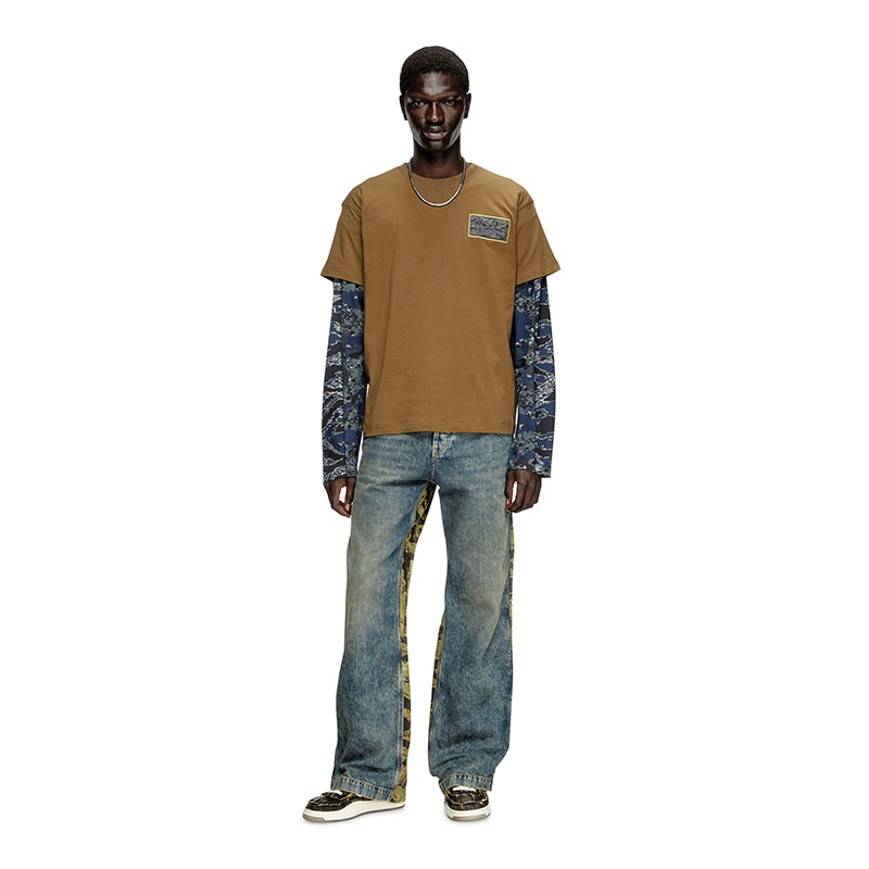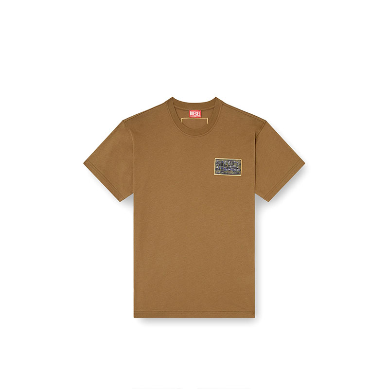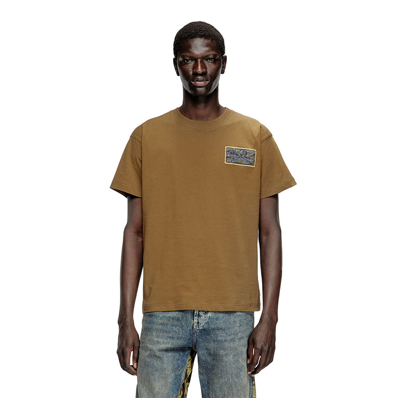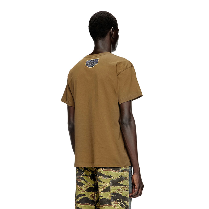 Diesel Men T-shirt with camo logo patch Military Green A193440AGRI