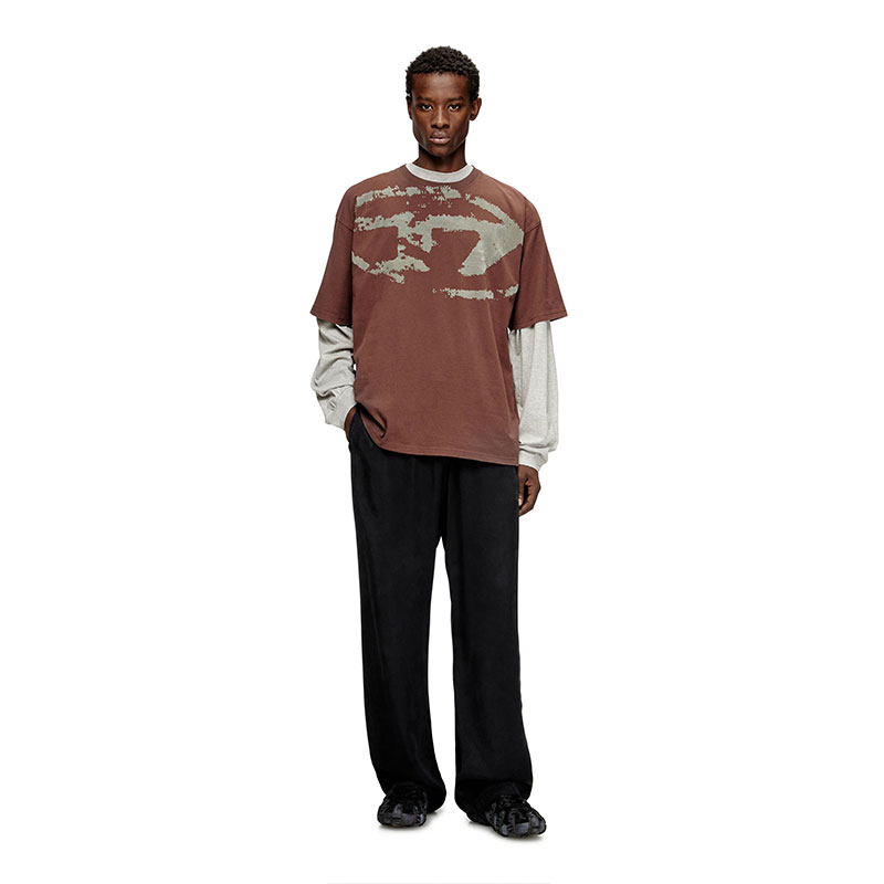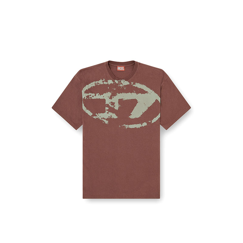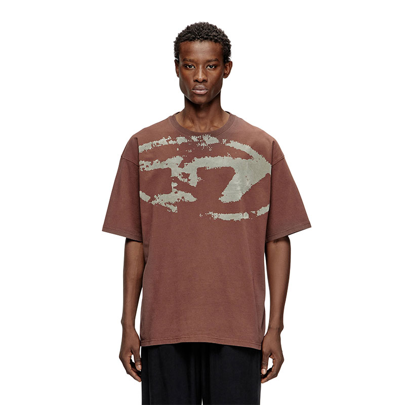Diesel Men T-shirt with distressed flocked logo Brown A130490DQAU