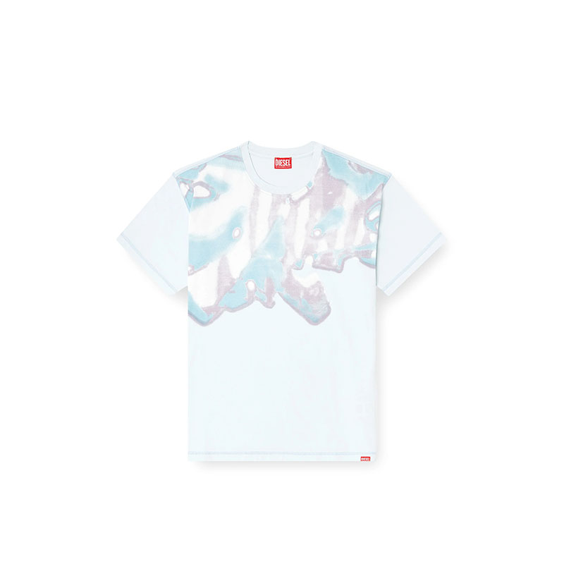 This exclusive men's tee from the FW25 Runway Show is crafted using a high percentage of organic cotton. Designed to look as though it's been flipped inside out, it's detailed with contrast overlock stitching and features a faded print on the front – the graphic is a wearable nod to the Diesel Show's chaotic setting that transformed the conventional catwalk into a colossal graffiti installation.