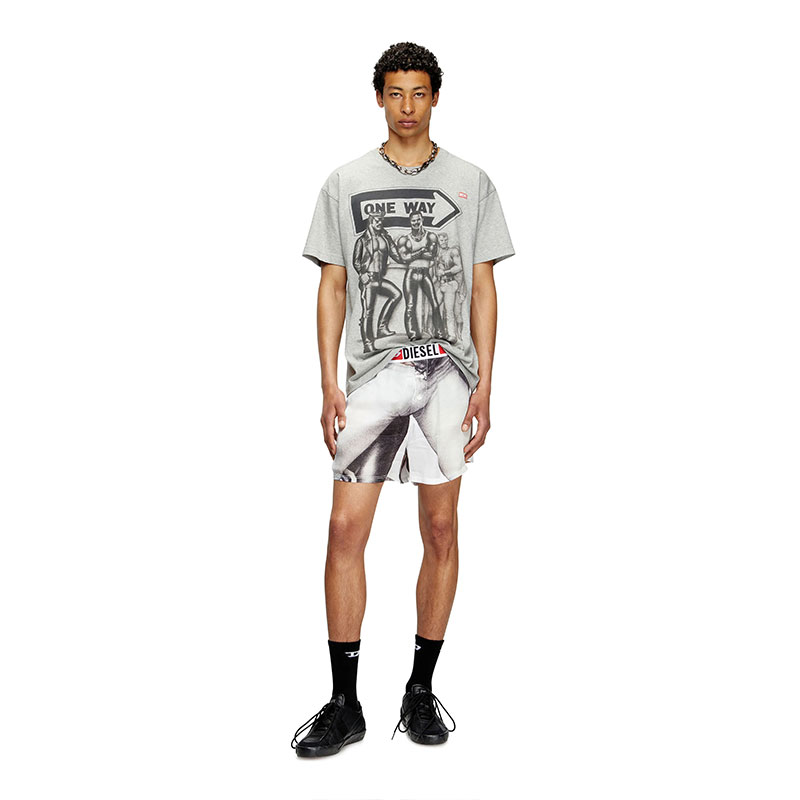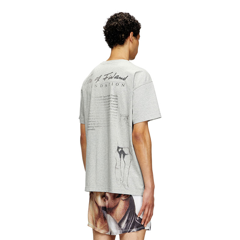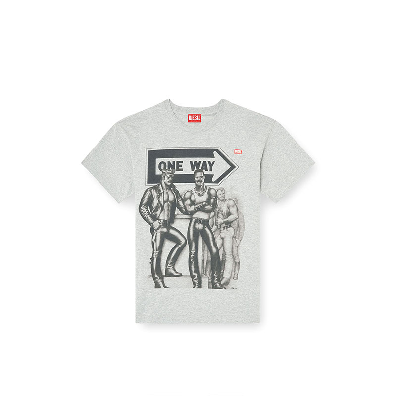 Diesel partners with the Tom of Finland Foundation on an annual Pride collaboration celebrating the LGBTQIA+ community. Part of the capsule, this unisex T-shirt is made from mélange organic-cotton jersey in a regular fit and digitally printed with homoerotic work by selected artists from the Foundation. Take a closer look at the herringbone tape on the back to see the inspiring message from the Foundation’s legendary namesake artist Tom of Finland.