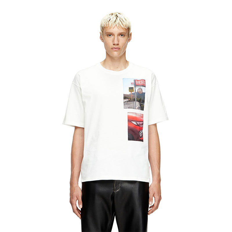 Diesel Men T-shirt with logo photo patches White A194670PLAT