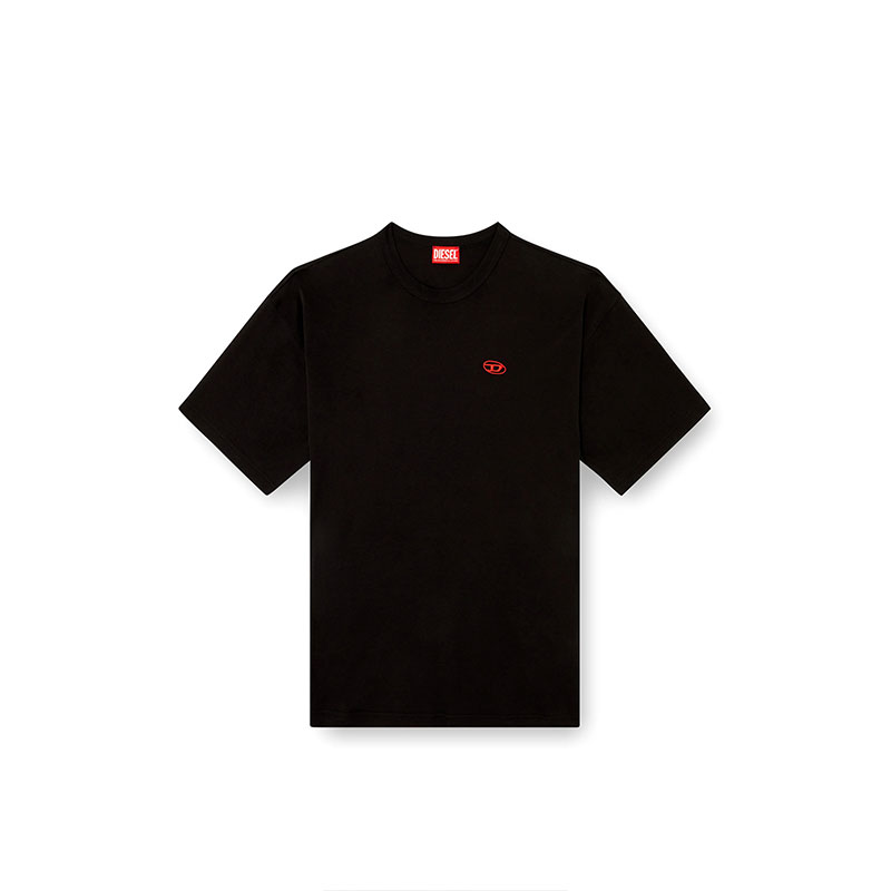 This men's tee is built from interlock jersey woven from 100% organic cotton. The fit is relaxed with dropped shoulders. A red embroidered Oval D adorns the chest.