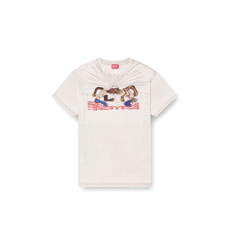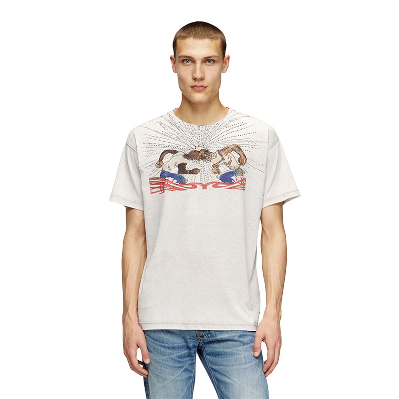 This men's tee is part of an artistic collab, featuring a cartoon graphic on the chest encrusted with rhinestones. Cut in a regular fit from blended cotton jersey, enriched with a burn-out wash for a faded look.