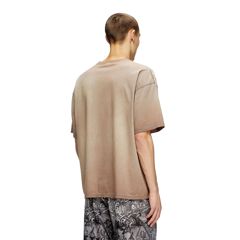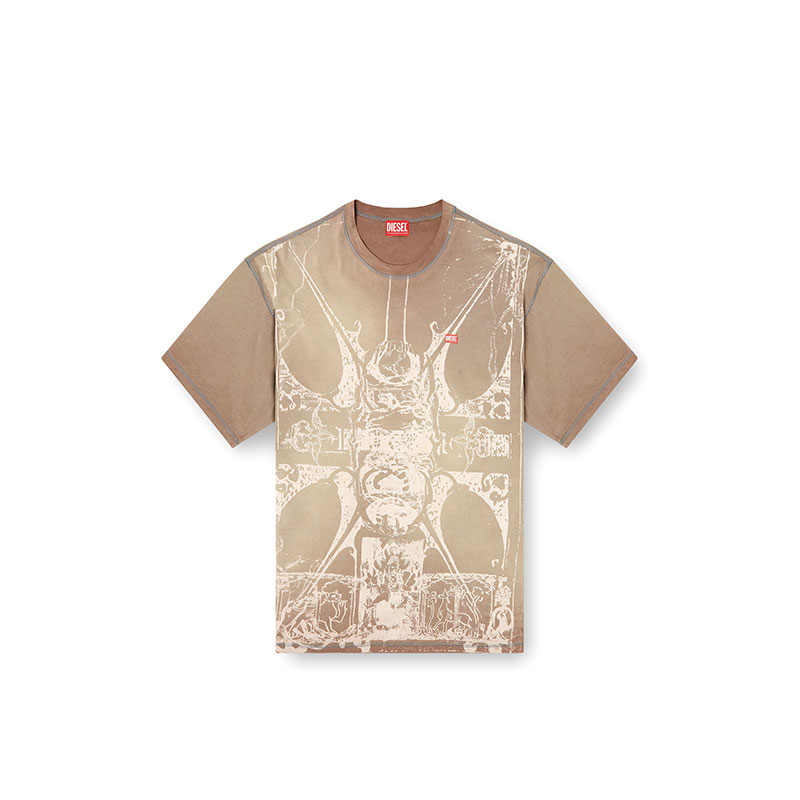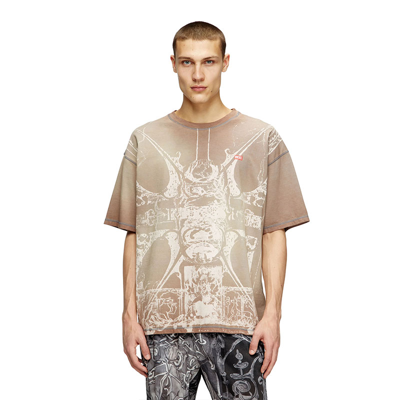 This men's organic cotton relaxed tee is part of a creative collaboration with an artist, tastefully detailed with a tonal design that takes inspiration from medieval artwork. Dyed from the inside for a subtly worn-in look with visible stitching, it features a Diesel label transfer on the chest.