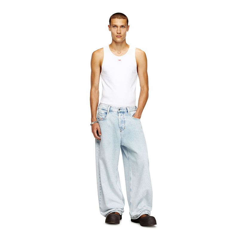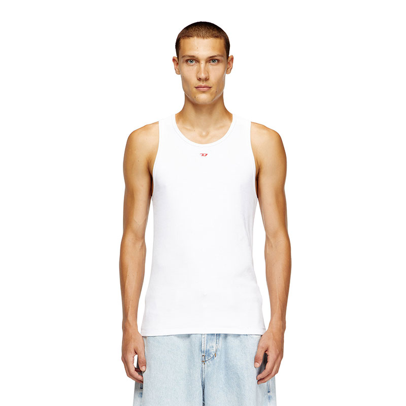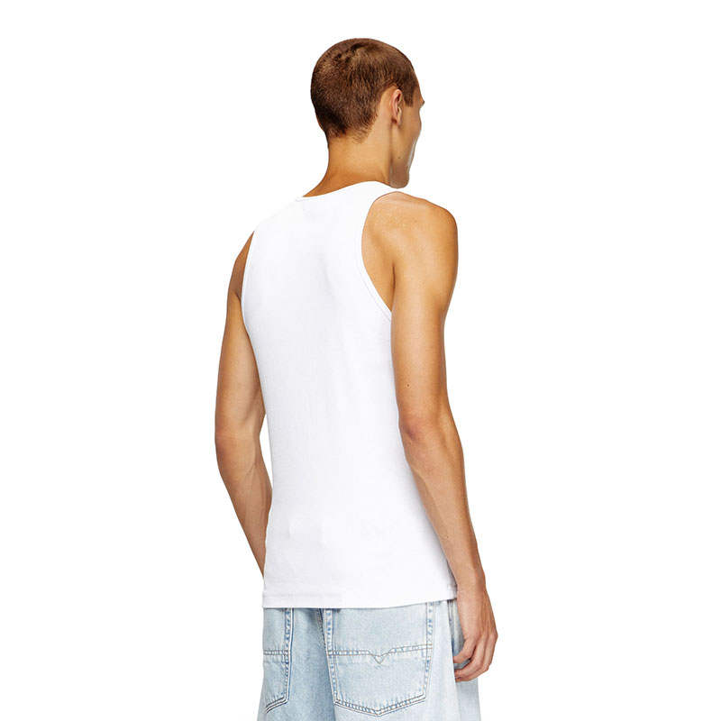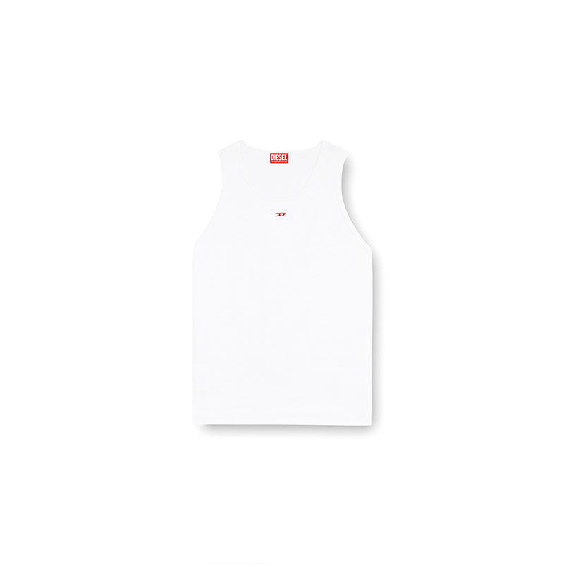Men's vest top in organic cotton. Made with stretch for a flexible slim fit, it's minimally detailed with an embroidered 'D' patch.