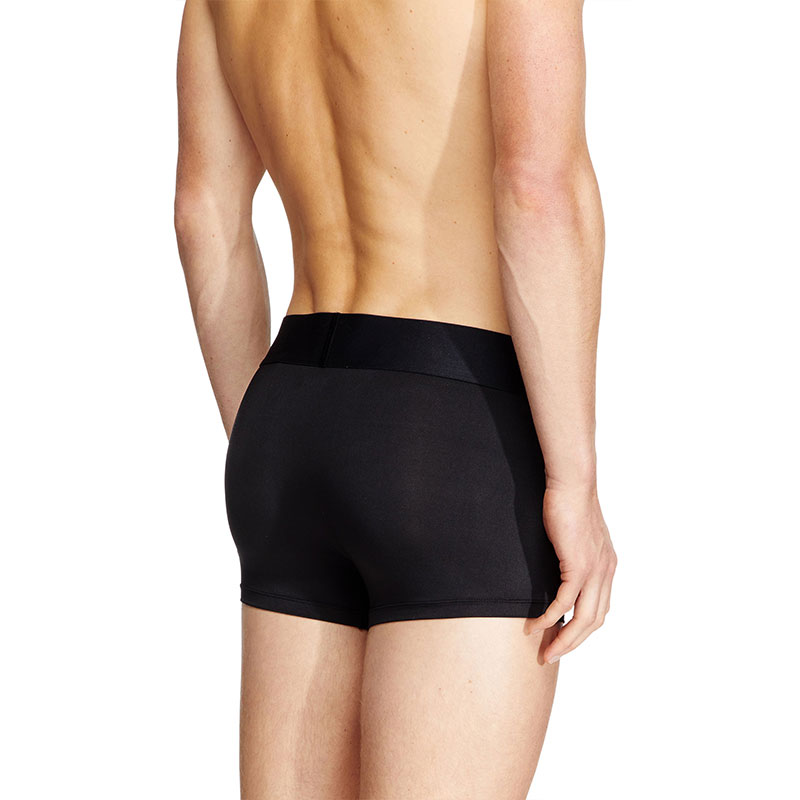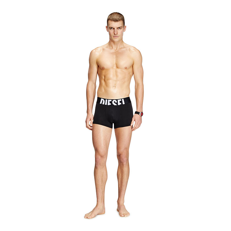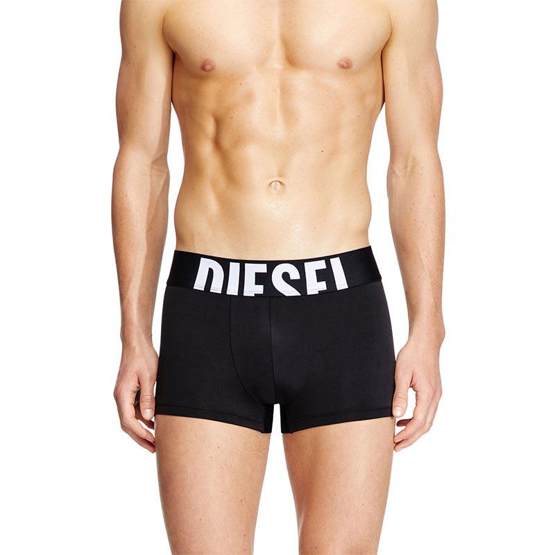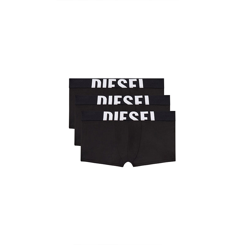 Three-pack of plain boxer briefs cut from soft and comfortable microfiber fabric. Each pair is topped with a wide jacquard waistband, featuring a maxi cut-off Diesel logo across the front.