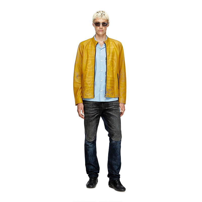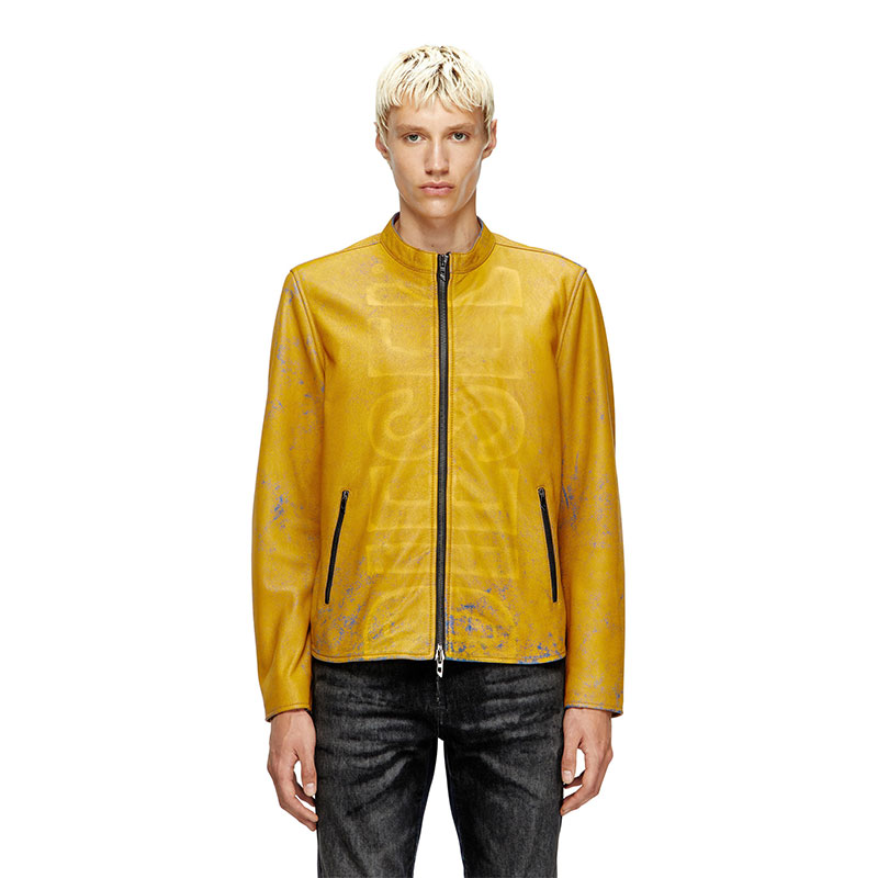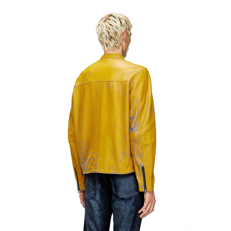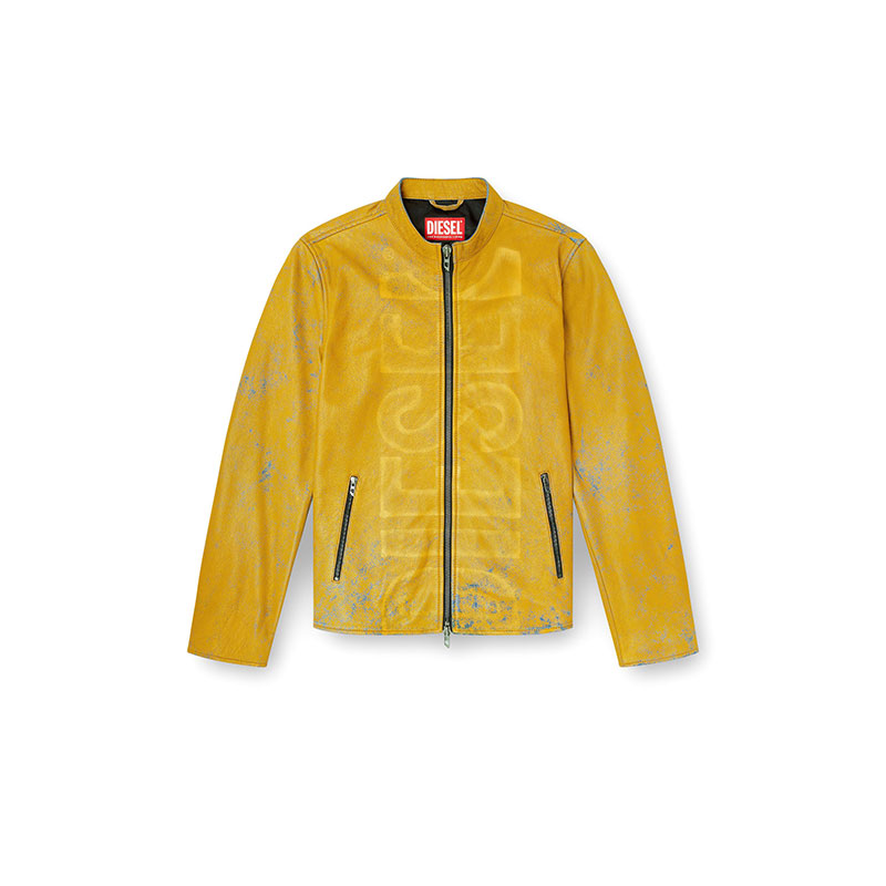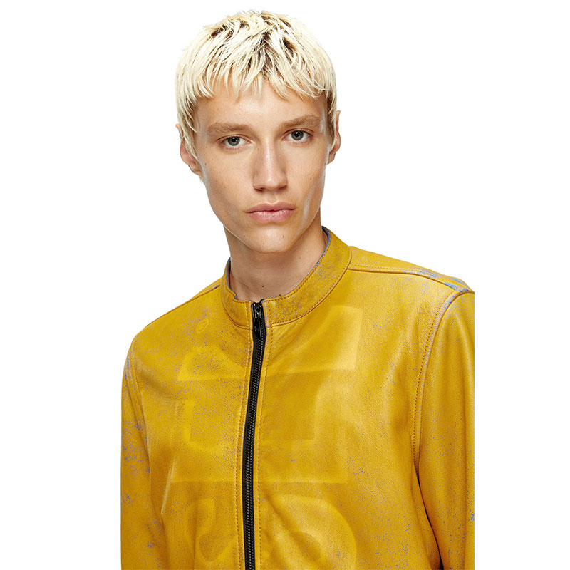 Diesel Men Treated leather biker jacket with faded logo Yellow A193500AJFV