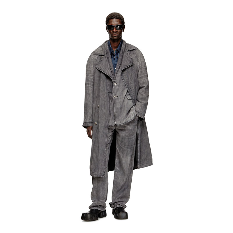 Diesel Men Trench coat in patterned denim Grey A20163068UJ