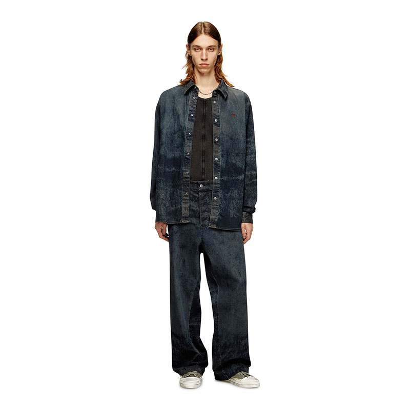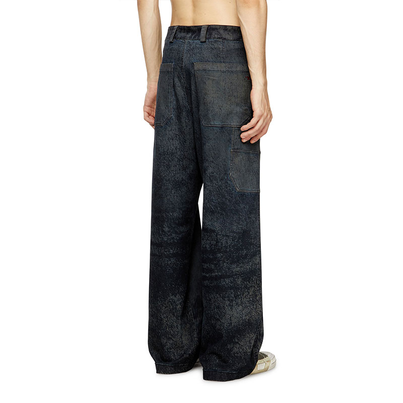 Cotton and viscose blend pants with a wide-leg design and relaxed fit. The unique fabric finish has a treated effect that adds character to the garment. Large back and side pockets enhance functionality, completing the clean and contemporary design.
