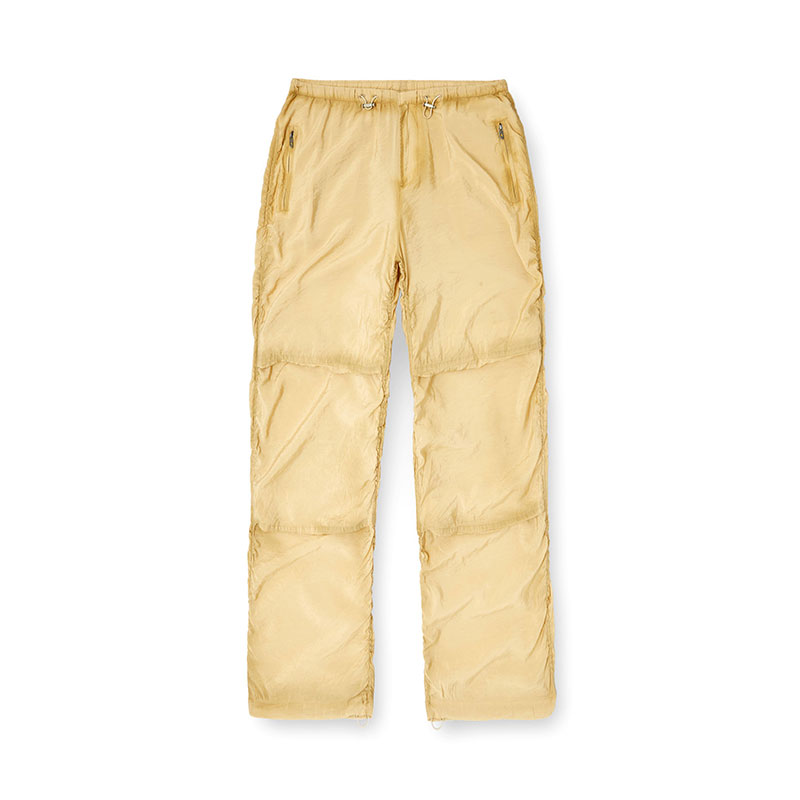 Hidden button and zip flyToggled drawstrings at waist and cuffsZipped side pocketsSnap-button back pockets