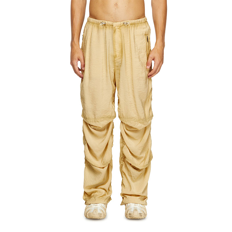 These men’s trousers are made from a blend containing a high percentage of lower-impact ECOVERO viscose fibres. The fabric is ultralight and fluid, with a subtle wrinkled texture. Slouchy articulated knees, toggled drawstrings and zip pockets define this utilitarian style. Complete with an embroidered Oval D logo on the back.