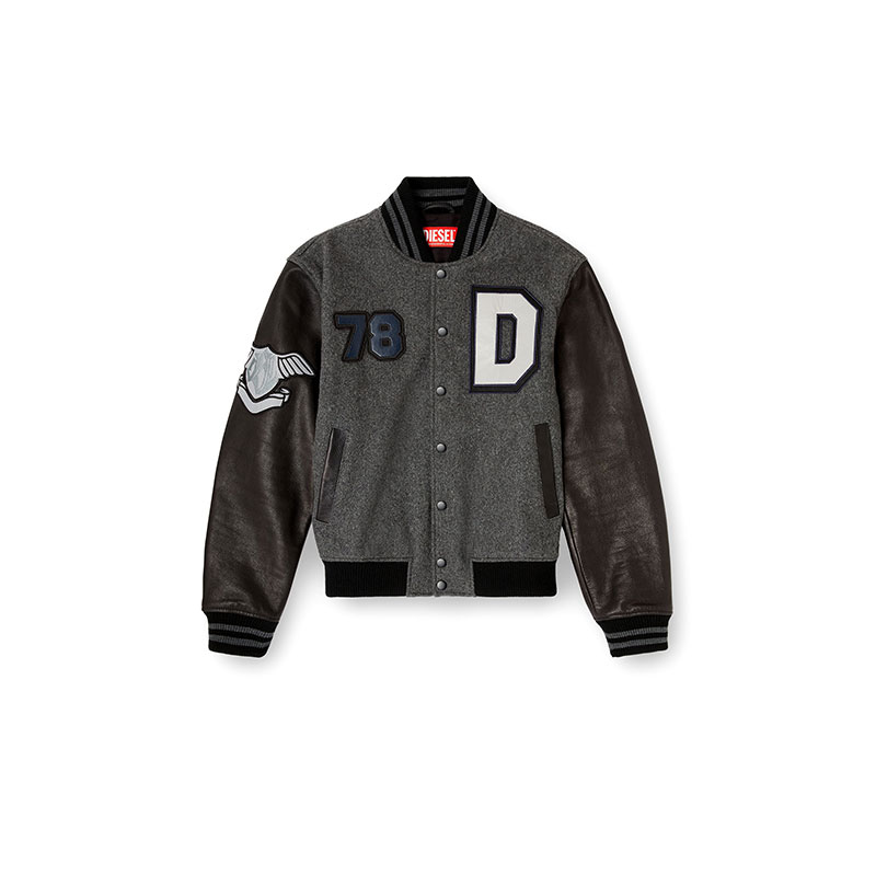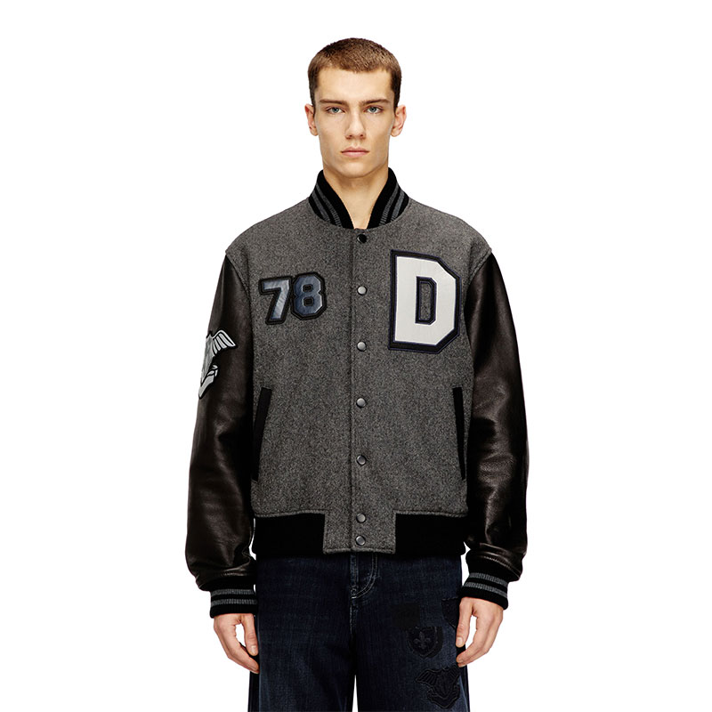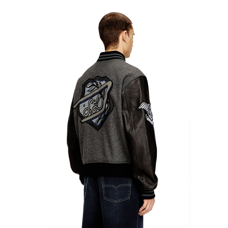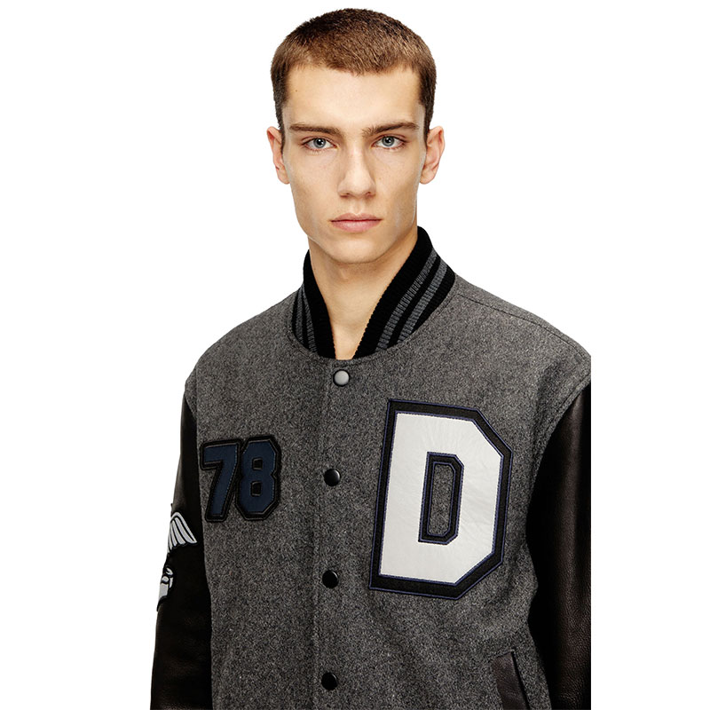 Diesel Men Varsity jacket in wool and leather Black/Grey A236050LHAL