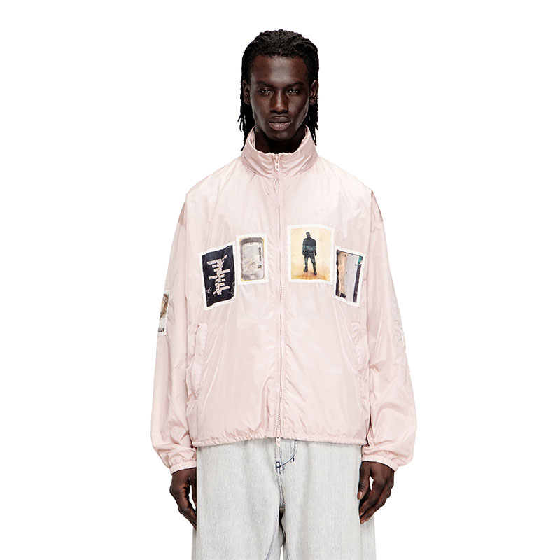 This men’s lightweight jacket is crafted from nylon in a compact weave for lasting durability and wind protection. Designed in a regular fit with a breathable mesh lining, it features a stow-away hood, secure zip pockets and an adjustable drawstring hem. Graphic patches with exclusive printed artwork and bold sleeve lettering take it from purely functional to street edge.