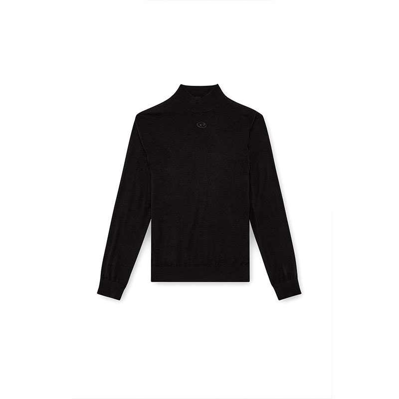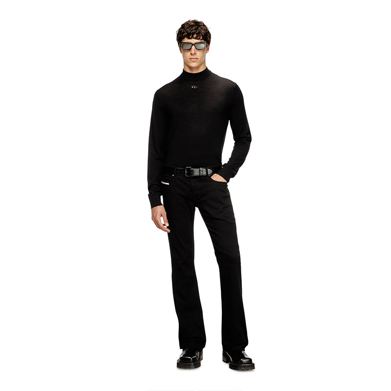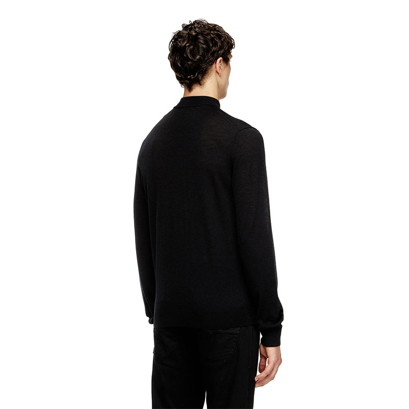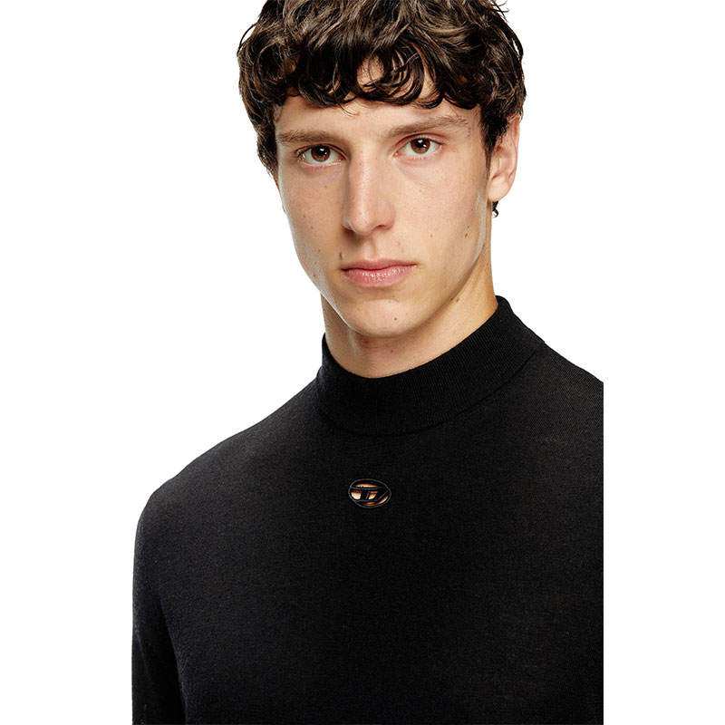 Men's black turtleneck sweater crafted from responsibly sourced wool. This piece is knitted in a slim profile and detailed with a cut-out and embroidered Oval D logo on the chest.