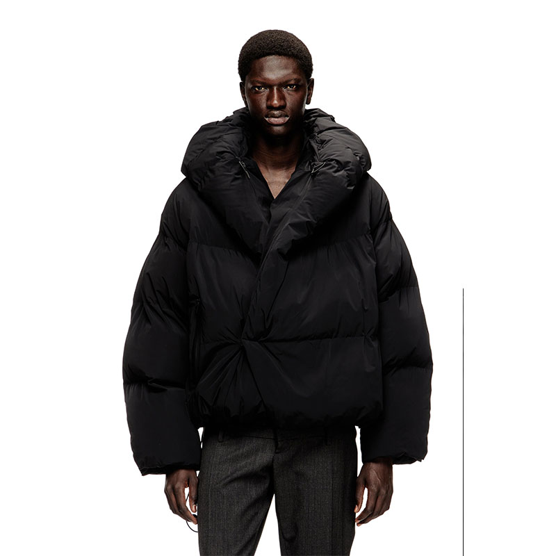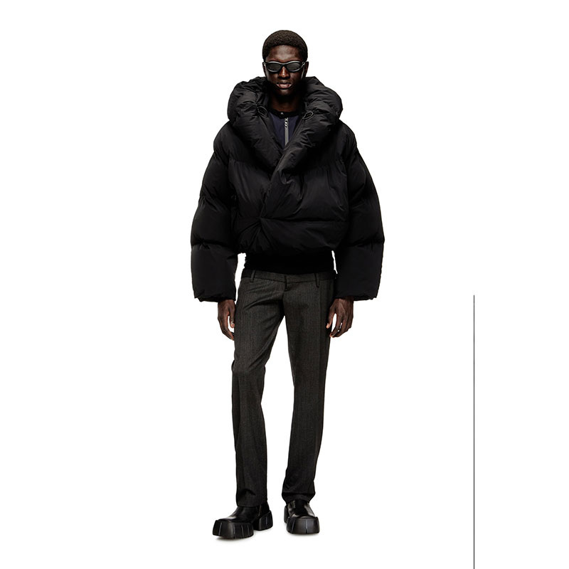 More than your ordinary puffer, this men's FW25 Runway Show jacket shakes up the cold-weather classic with a loose shape that engulfs the body like a shawl. Padded to the extreme, it's made from technical nylon, engineered to stretch in two directions for serious flexibility. Toggle adjusters temper the hood to keep the chill firmly out.