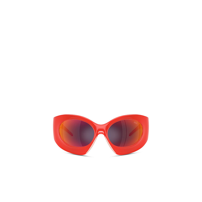 The Diesel X Karol G collab delivers an otherworldly take on experimental style. Made to be noticed, these ultra-wrapped frames feature amplified volumes and a liquified look. A blend of Diesel’s urban roots and Karol G’s reggaeton vibe in a slick orange colorway.