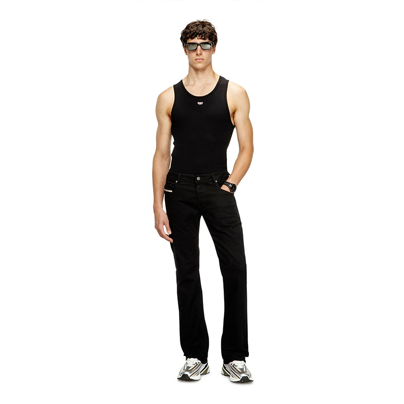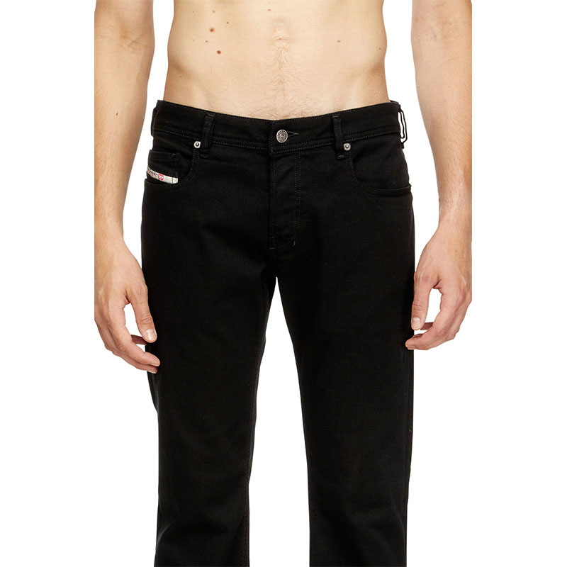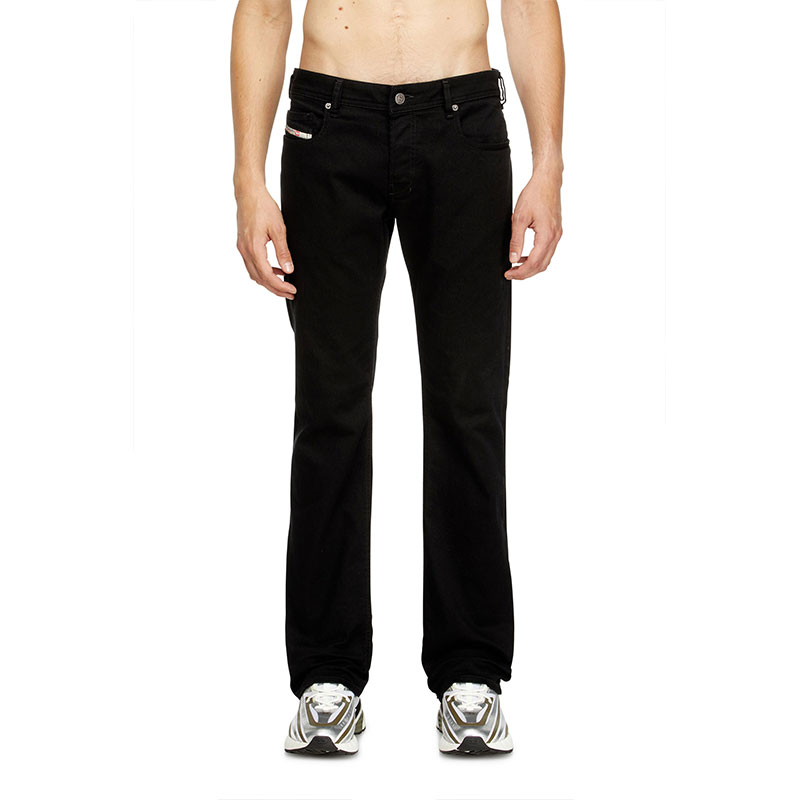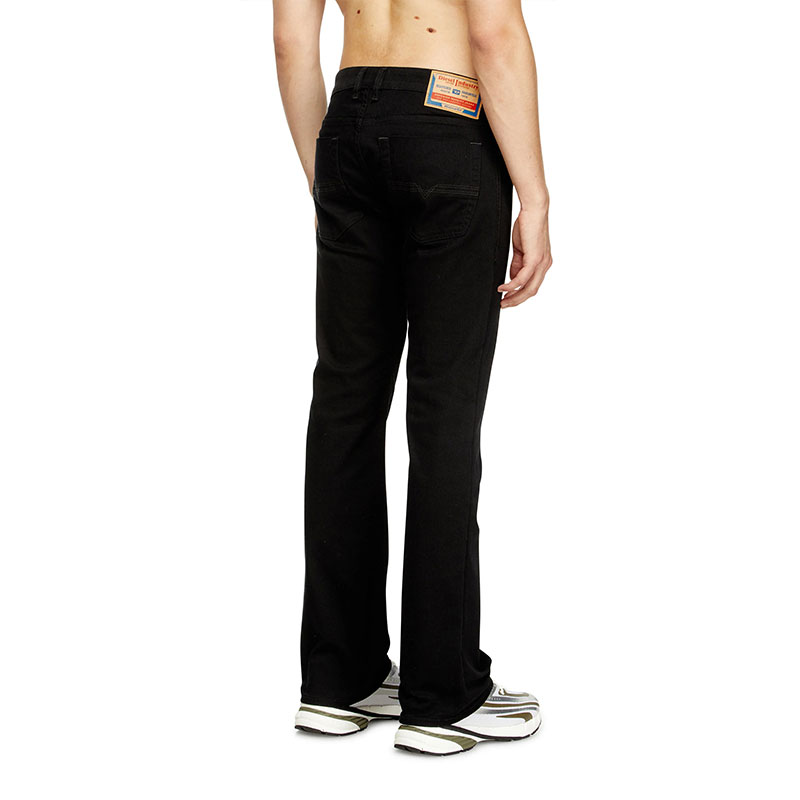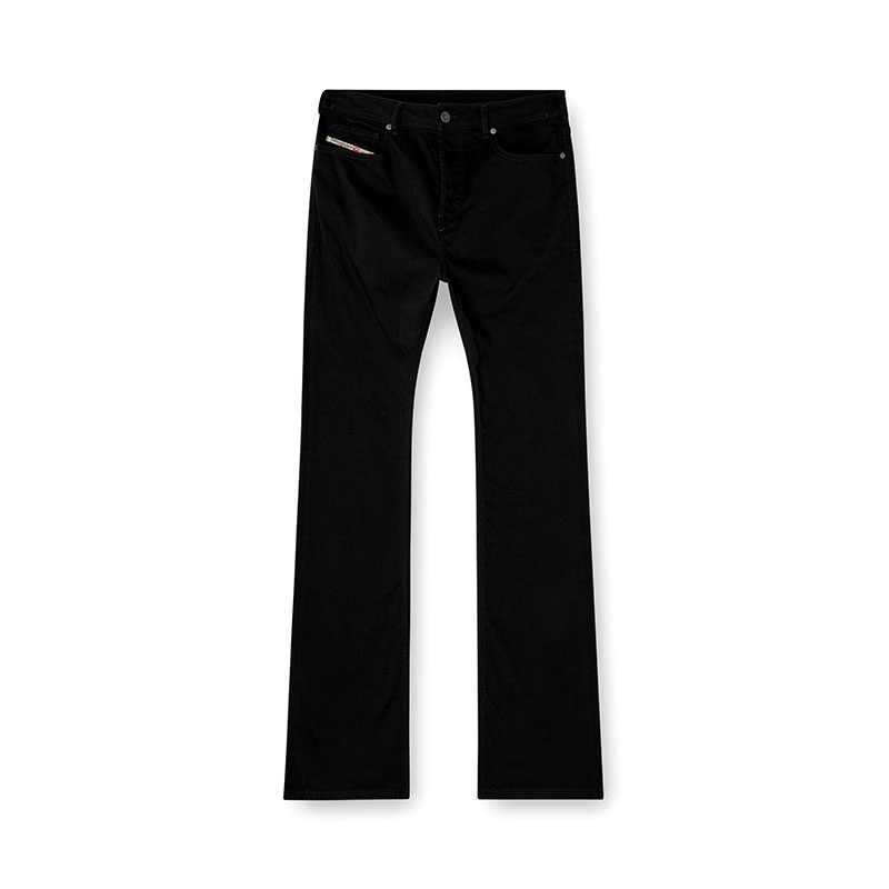 Bootcut fit with a low waist and slim leg that widens through the calf to the ankle. Button fly.