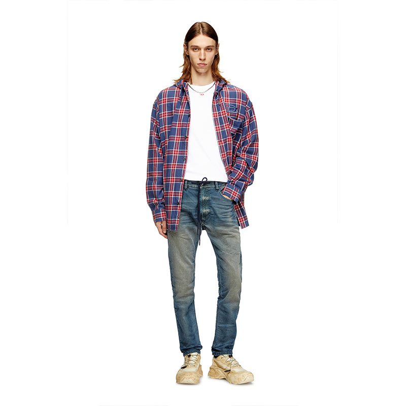 The dark blue wash has a lived-in look, with whiskers, abrasions and a soft dirt finish – a signature DNA look.