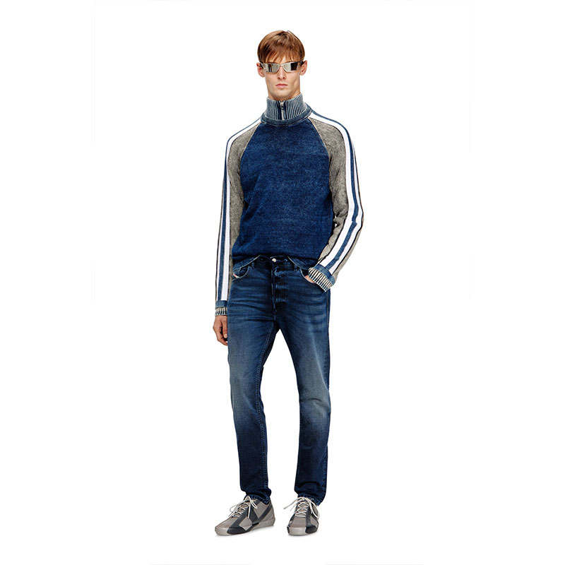 The medium blue wash is elevated by hand-sanded effects for a subtle, naturally used look.