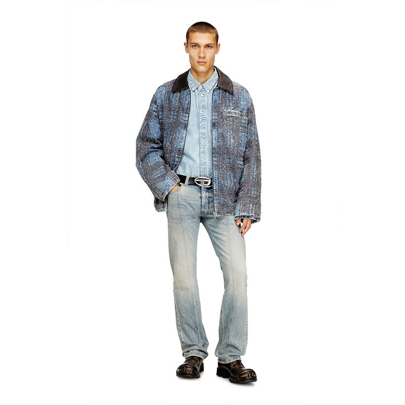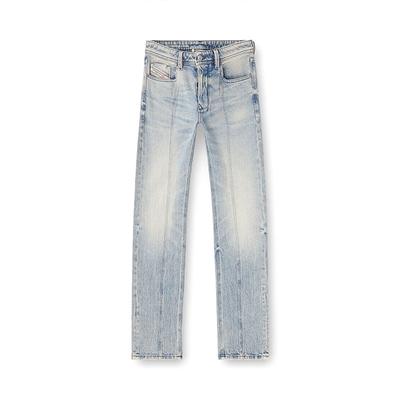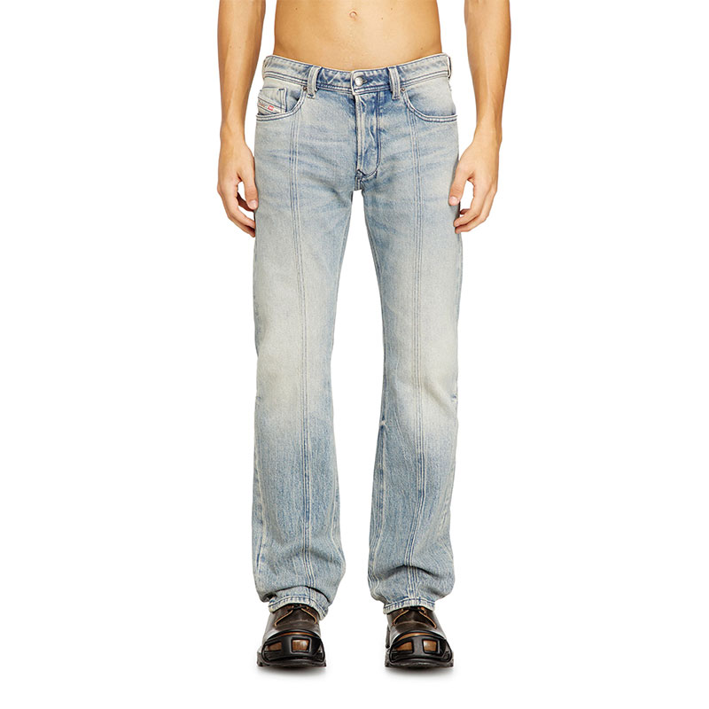 Expertly treated for a worn-in aesthetic that's integral to Diesel's DNA, this light blue wash combines multiple artisanal techniques. Manually sanded whiskers and dirt effects lend depth, while binding and brushwork create artistic streaks along the leg that are unique to each piece. Made from comfort denim with a percentage of recycled cotton.