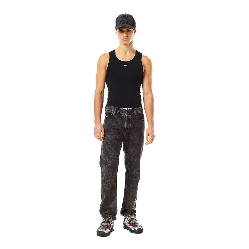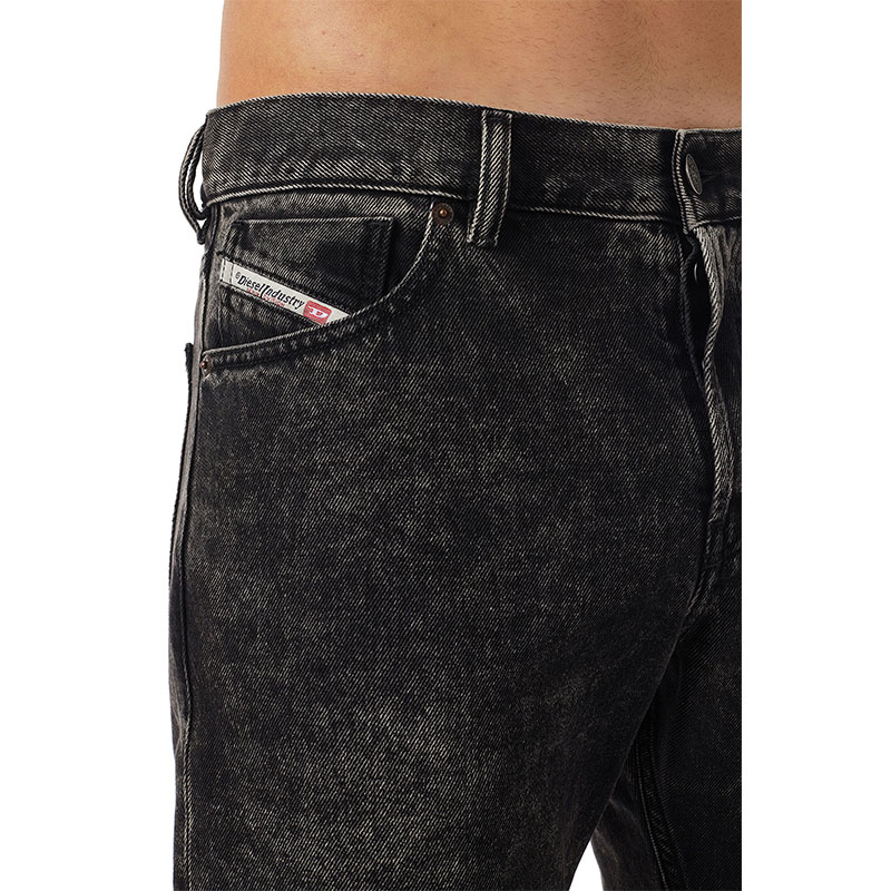 Slim style with a regular waist and Regular fit. Taking inspiration from the techno music of the mid 90s, this jean features a button fly and an original Diesel attitude.