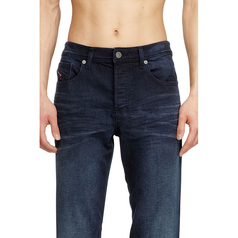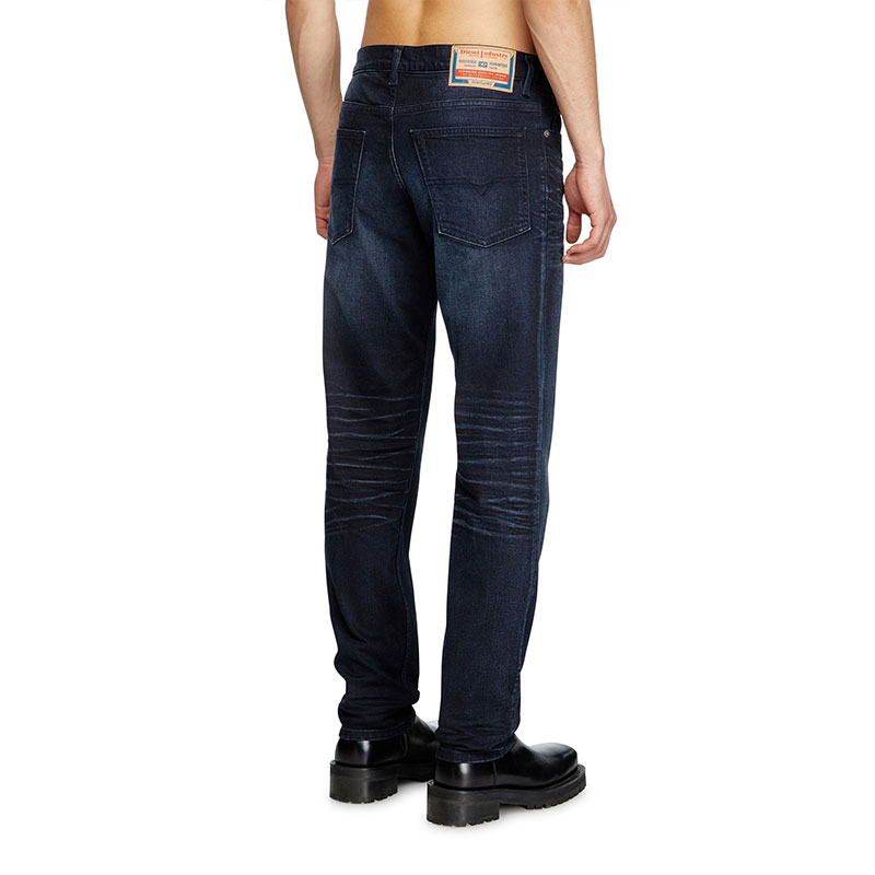 This recycled-cotton comfort denim showcases a deep, dark blue wash that's very subtly treated for an essential, DNA look.