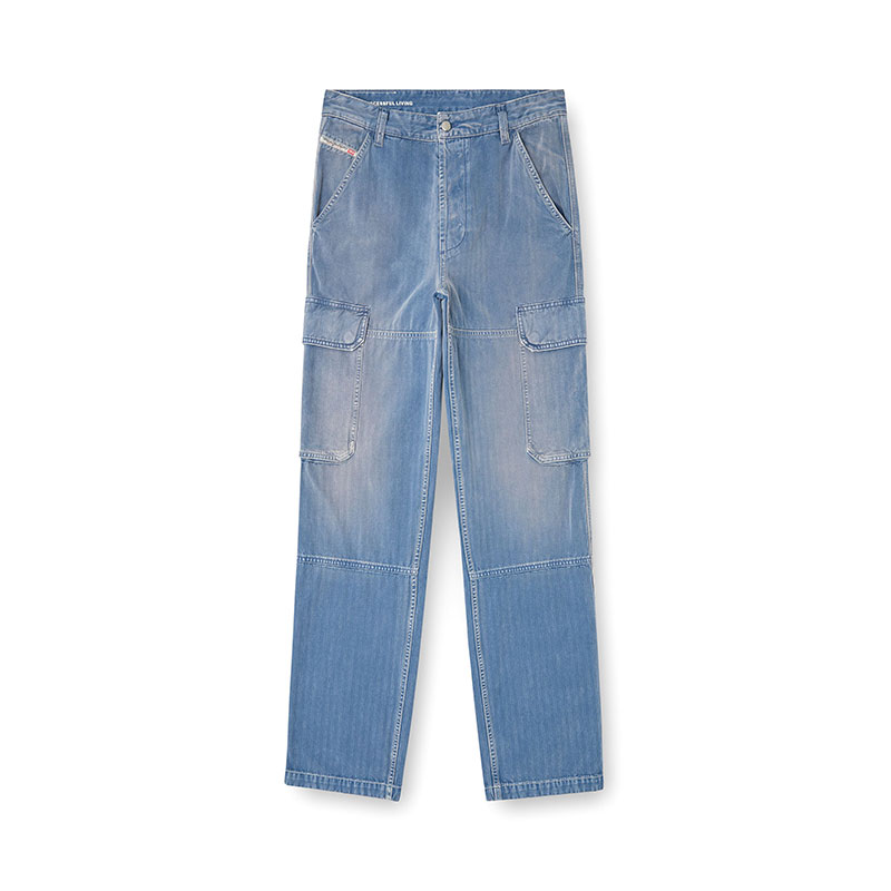 Designed to lend an edgy twist to everyday "uniform" dressing, this fix denim stands out with a refined herringbone pattern in a soft indigo colour, creating a subtle pinstriped effect. This exclusive wash is part of Diesel's DNA selection, showcasing the brand's heritage and essential style codes. Available only in Diesel flagship stores and on diesel.com.