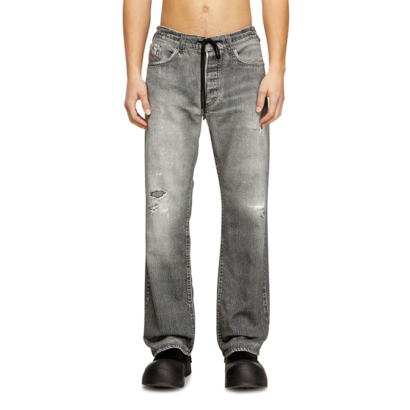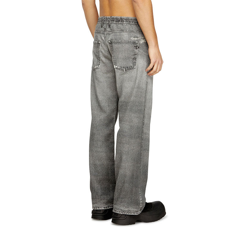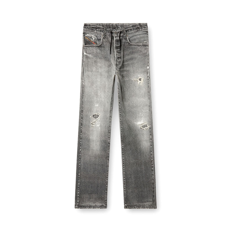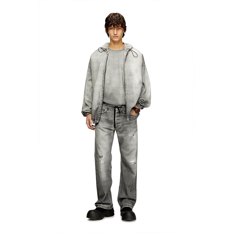 This DNA wash blends an innovative vision with authentic denim character. A digital graphic print replicates the abrasions and natural wear-and-tear of a lived-in jean, creating a trompe l’oeil effect in shades of grey.