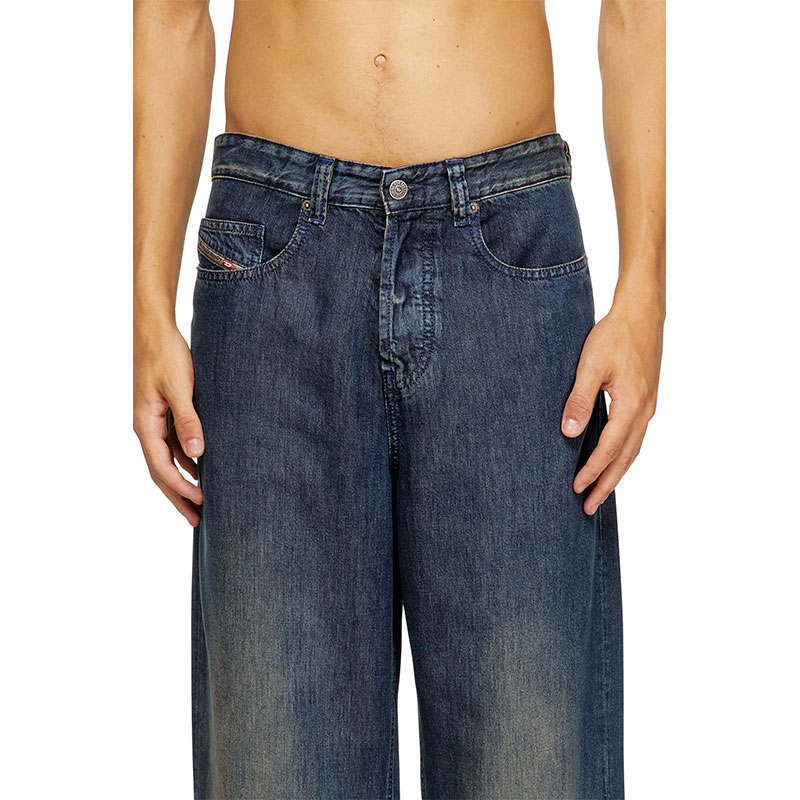Relaxed fit with a low waist, low crotch, and wide leg. This longer, looser silhouette has room for swagger. Button fly.