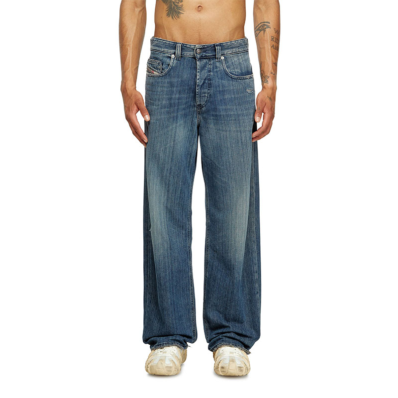 Relaxed fit with a low waist, low crotch, and wide leg. This longer, looser silhouette has room for swagger. Button fly.