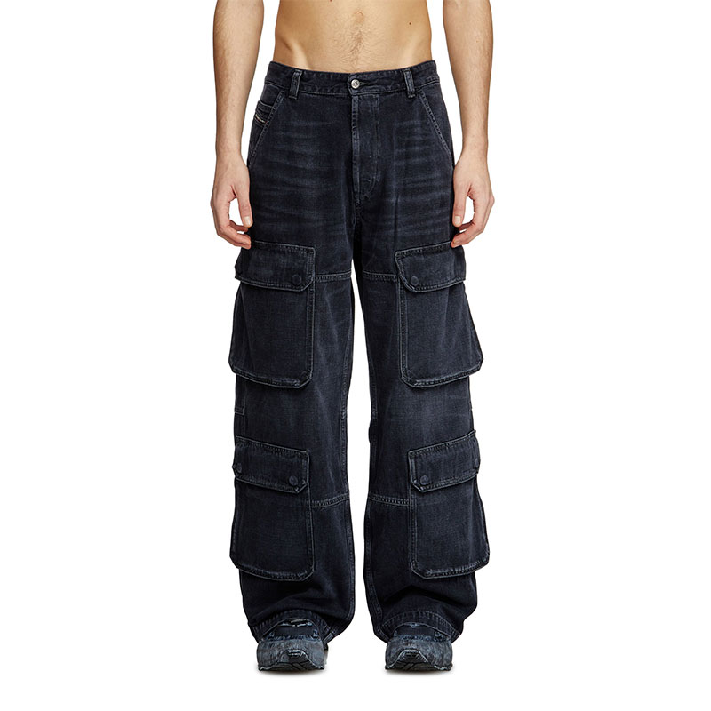 Relaxed fit with a medium waist, low crotch, and long wide leg. Designed with four cargo pockets and workwear-inspired detailing. Button fly.