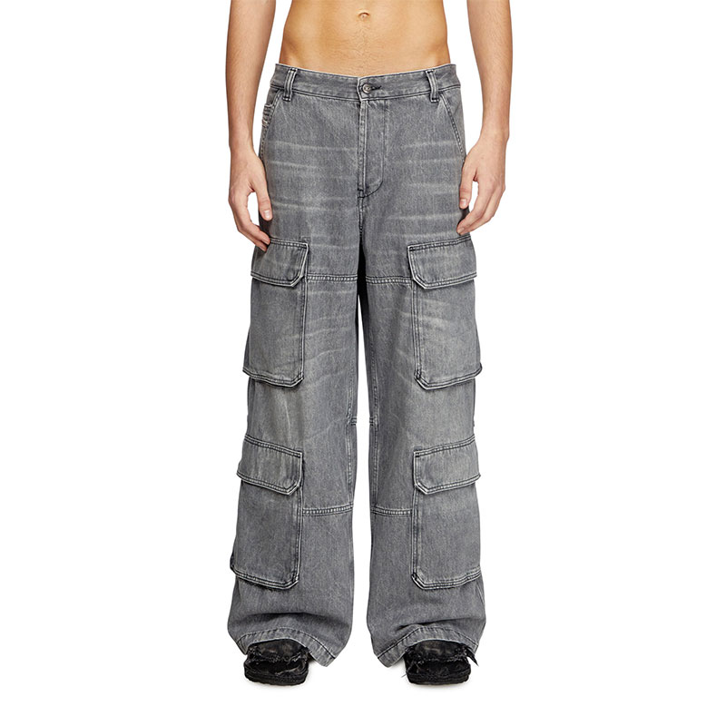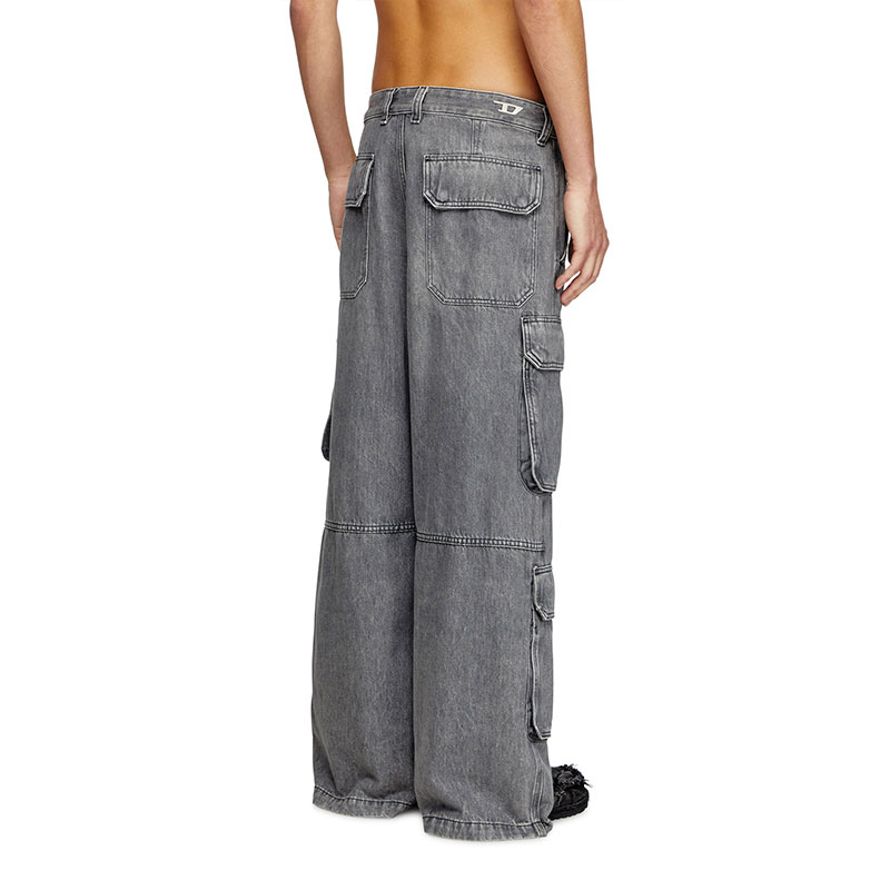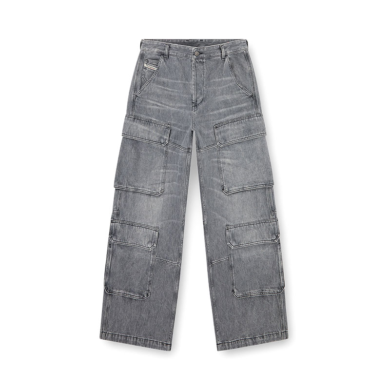 Relaxed fit with a medium waist, low crotch, and long wide leg. Designed with four cargo pockets and workwear-inspired detailing. Button fly.