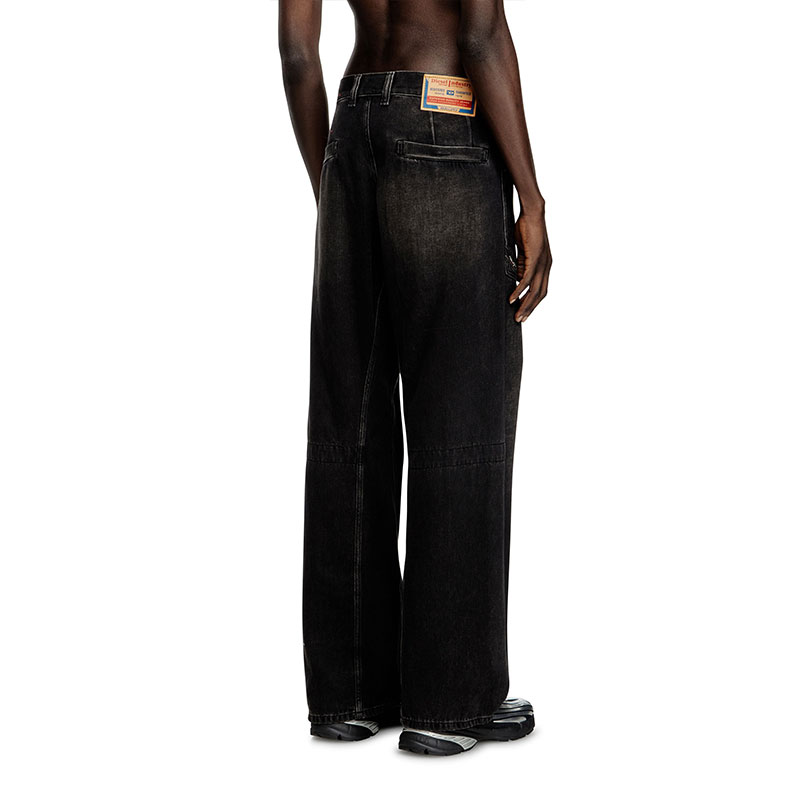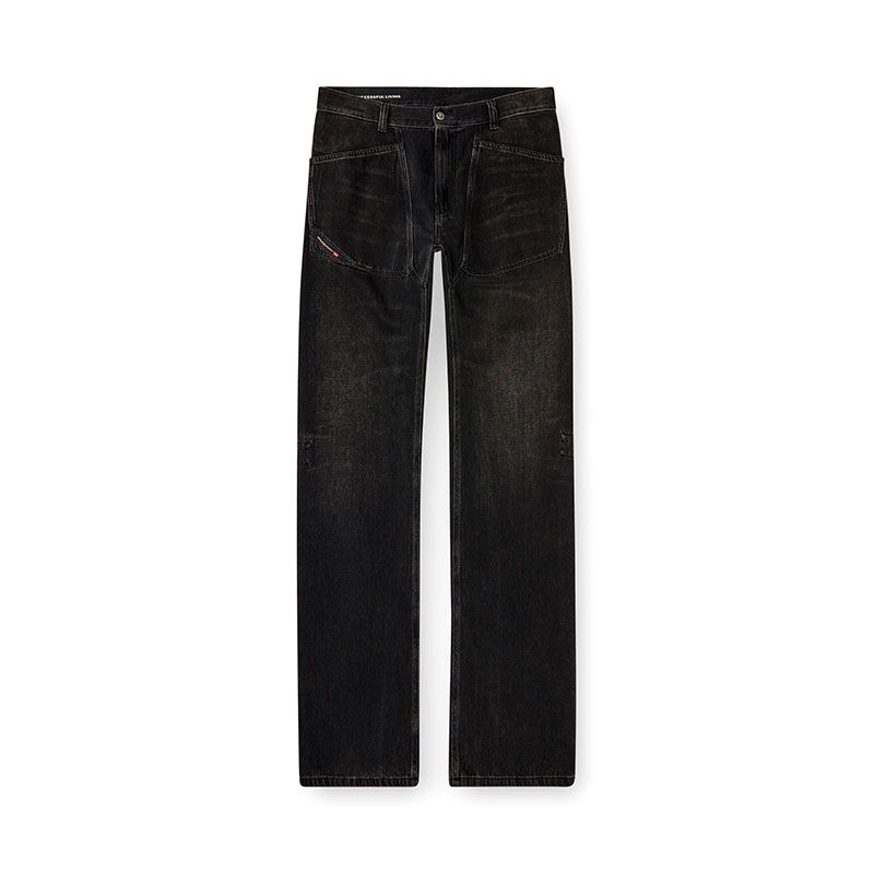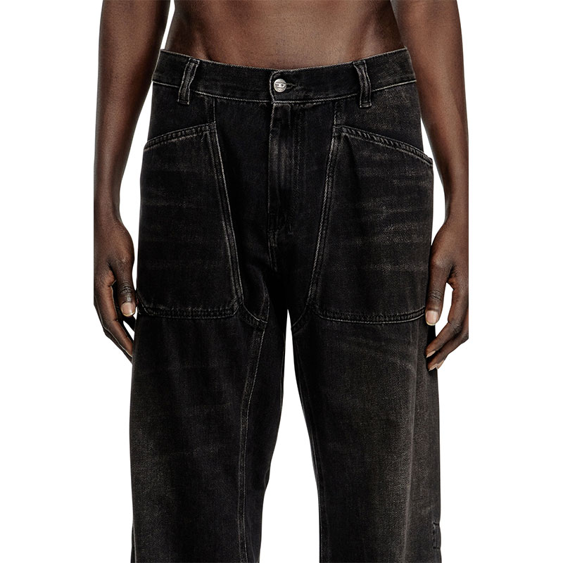Relaxed fit with a low waist and regular leg. Borrowed from the Diesel archives, this style is defined by maxi utility pockets on the waistband.