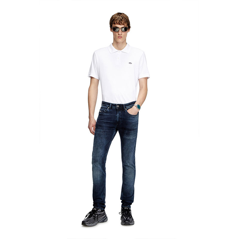 Skinny fit with a low waist and a long, narrow leg from thigh to ankle, cut for the perfect amount of bunching in the leg.