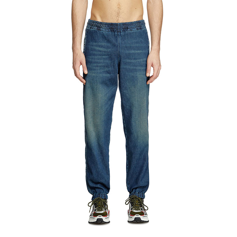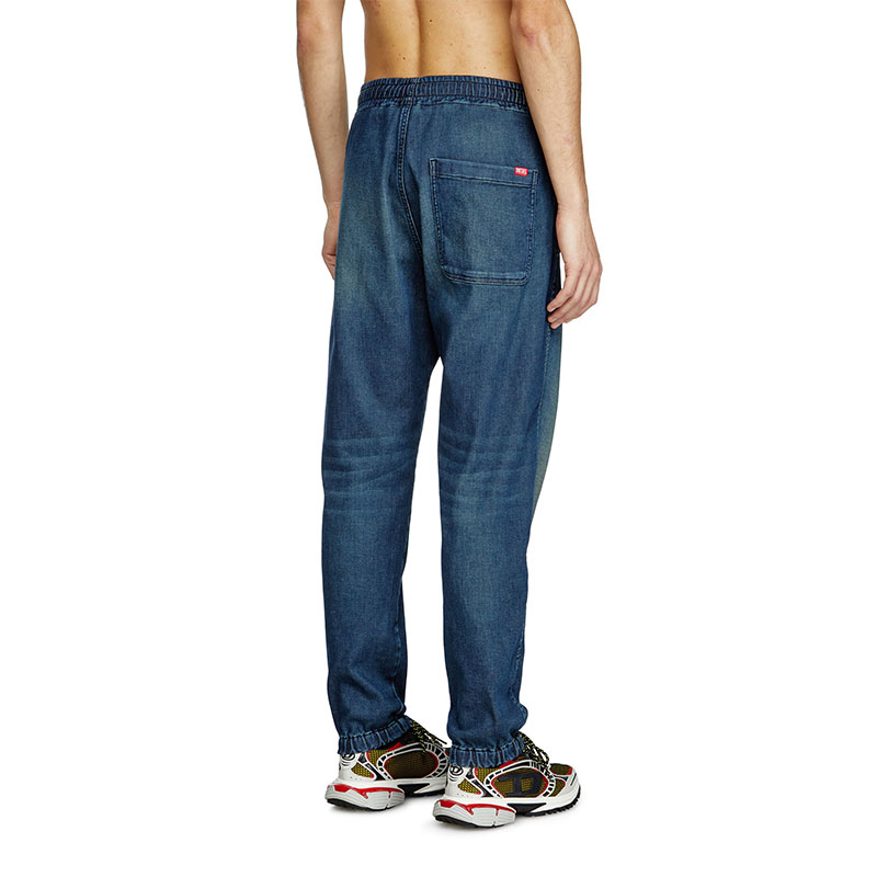 Slim fit with a medium waist and tapered leg. Characterised by a clean construction, with elasticated trims and a single back patch pocket.