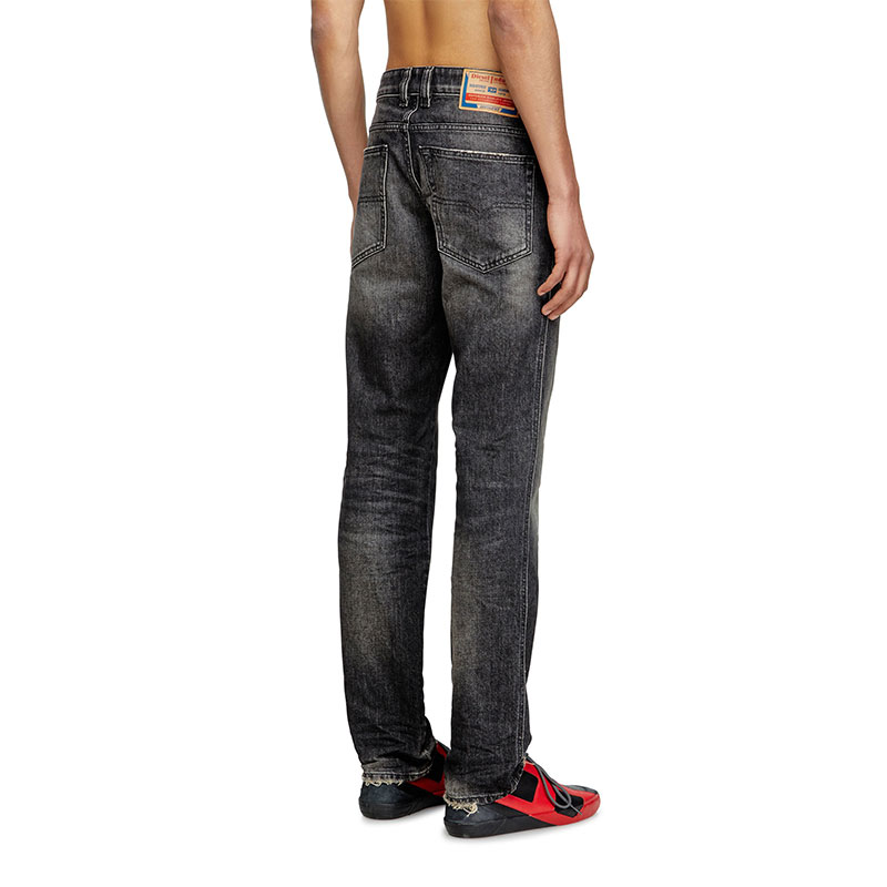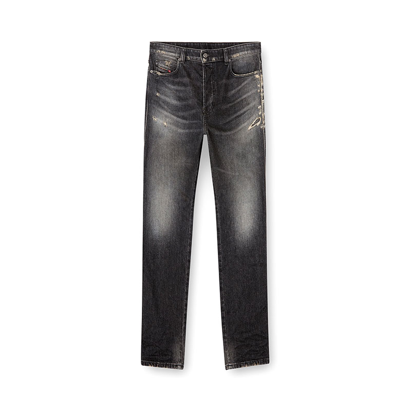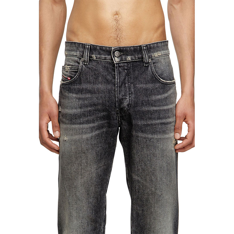 Crafted from comfort denim, this black style nods to the brand's DNA destroyed aesthetic – note the ripped and repaired abrasions on the left leg. It's made using a significant percentage of regenerative cotton.