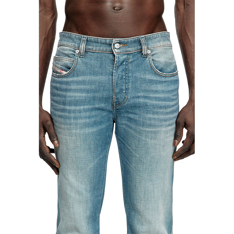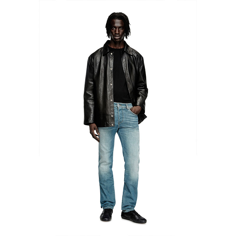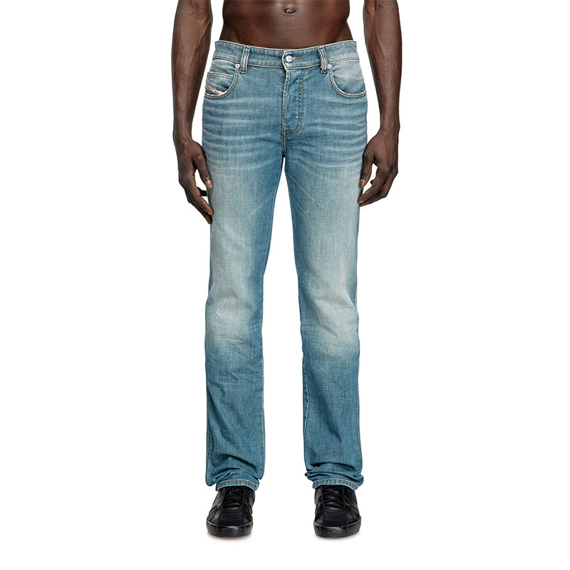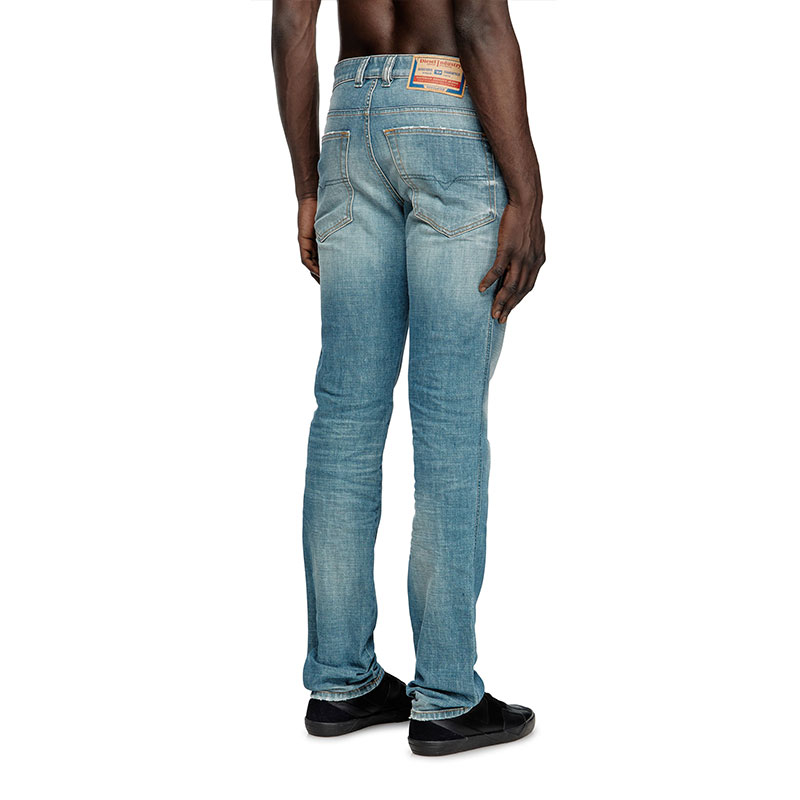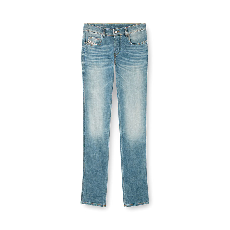 This DNA wash features a heritage, medium blue hue, detailed with minimal abrasions on the pockets and seams, and light whiskering. Made from comfort denim using a percentage of regenerative cotton.