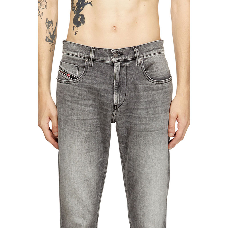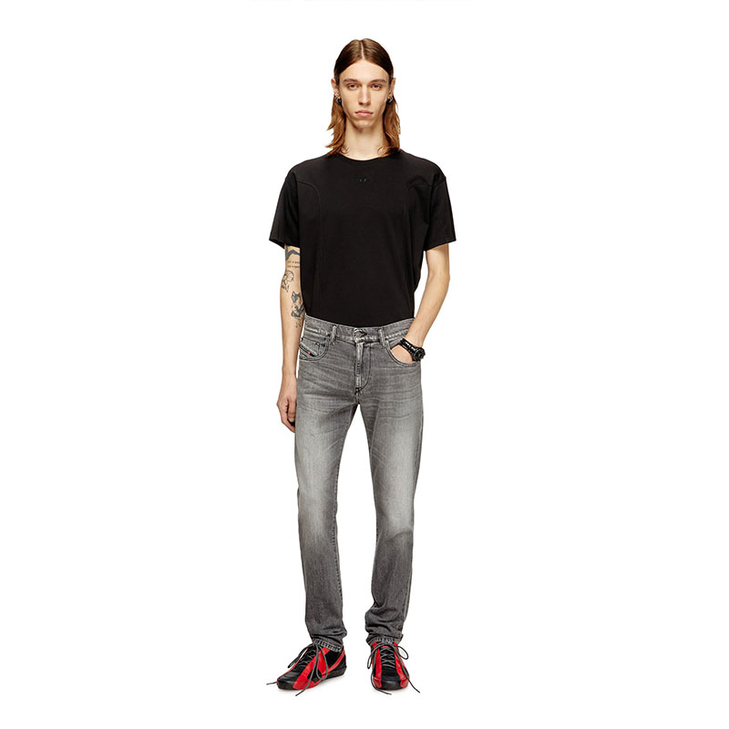 This garment is made from comfort denim with a percentage of regenerative cotton. The DNA wash is lightly treated with whiskers and shaded areas on a grey base for an authentic lived-in look.