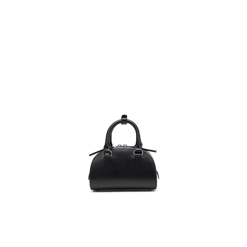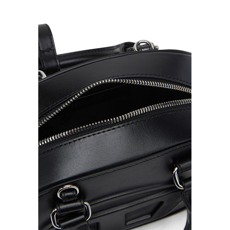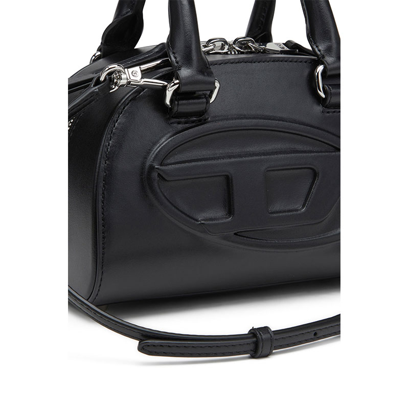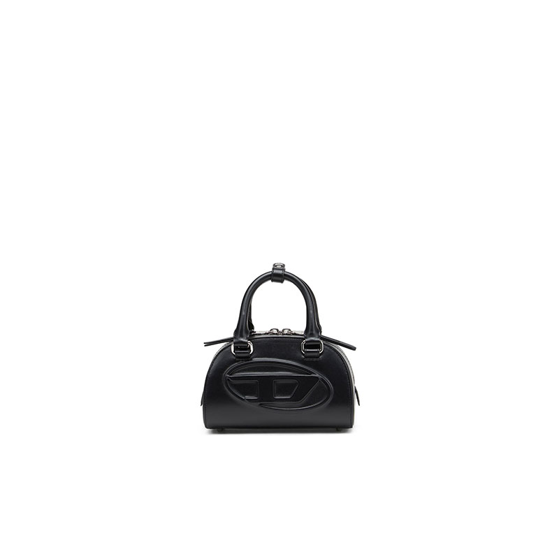 This women’s mini bowling bag evolves our 1DR, with a compact curved silhouette in responsibly-sourced Italian leather. The iconic oval D logo on the front is achieved through an innovative high-frequency embossing technique. A detachable strap easily turns it into a mini crossbody bag, while the regular top handles keep it feeling like a true bowler purse. Detailed painted edges, a convenient two-way zip fastening, and metal feet to keep it scratch-free, ensure this streamlined mini bowler bag is practical while maintaining its unmistakable Diesel attitude.