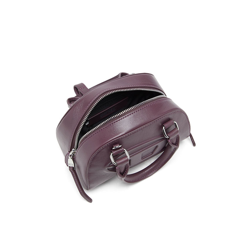 An evolution of the iconic 1DR, this women’s ‘Dome’ mini bag showcases a modern bowling shape. Crafted from quality burgundy leather in a chic curved shape that's compact yet capacious, the bag is further enriched with a high-frequency embossed Oval D logo on the front. Functioning as a crossbody or a top-handle, it's equipped with a convenient two-way zip fastening for easy access.