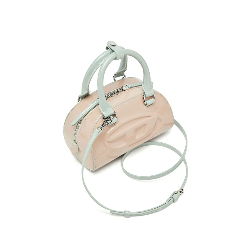 This women’s ‘Dome’ mini bowling bag is an evolution of the iconic 1DR. Designed in a curved, structured shape with a two-way zip fastening and metal feet, this sporty, colour-block iteration is crafted from PU with the distinctive wrinkled texture and high-shine finish of naplak leather. It has a detachable crossbody strap and a top handle secured with a snap-fastening loop. The Oval D logo, embossed using an innovative high-frequency technique, is a core element of the Diesel identity.