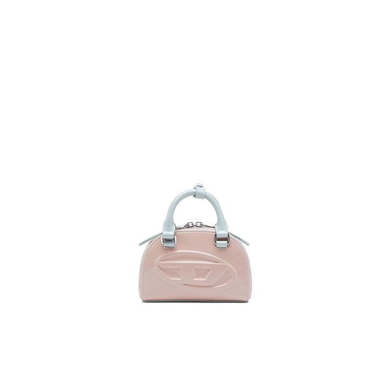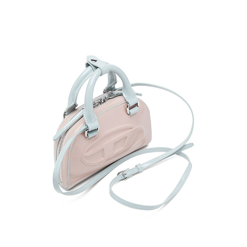 This women’s mini crossbody is a slimmer yet fully functional version of the ‘Dome’ bowling bag evolved from the iconic 1DR. Featuring an adjustable strap and rolled top handles, it embraces a playful colour-block design in PU. The fabric has the distinctive wrinkled texture and patent shine of naplak leather. The zipped compartment – roomy enough for your phone, card holder, keys and lipstick – opens wide, with side gussets keeping everything secure. Up front, an embossed Oval D is as bold as the bag.