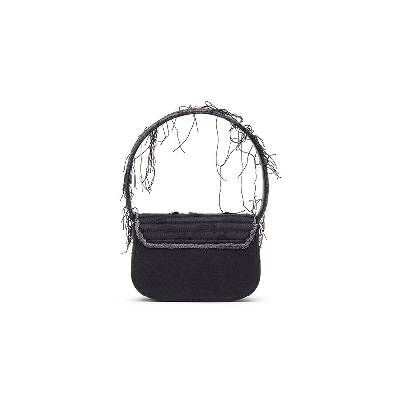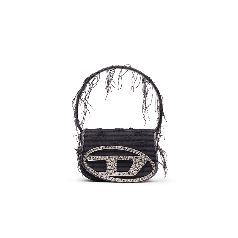 Synonymous with Diesel's irreverent DNA, this women’s 1DR bag looks destroyed yet precious. It's crafted from distressed quilted canvas with dangling frayed threads and leather details. The iconic Oval D hardware is a megawatt embellishment, bedecked with crystals of various tones and sizes. This top-handle bag fits neatly underarm and comes with a detachable crossbody strap.