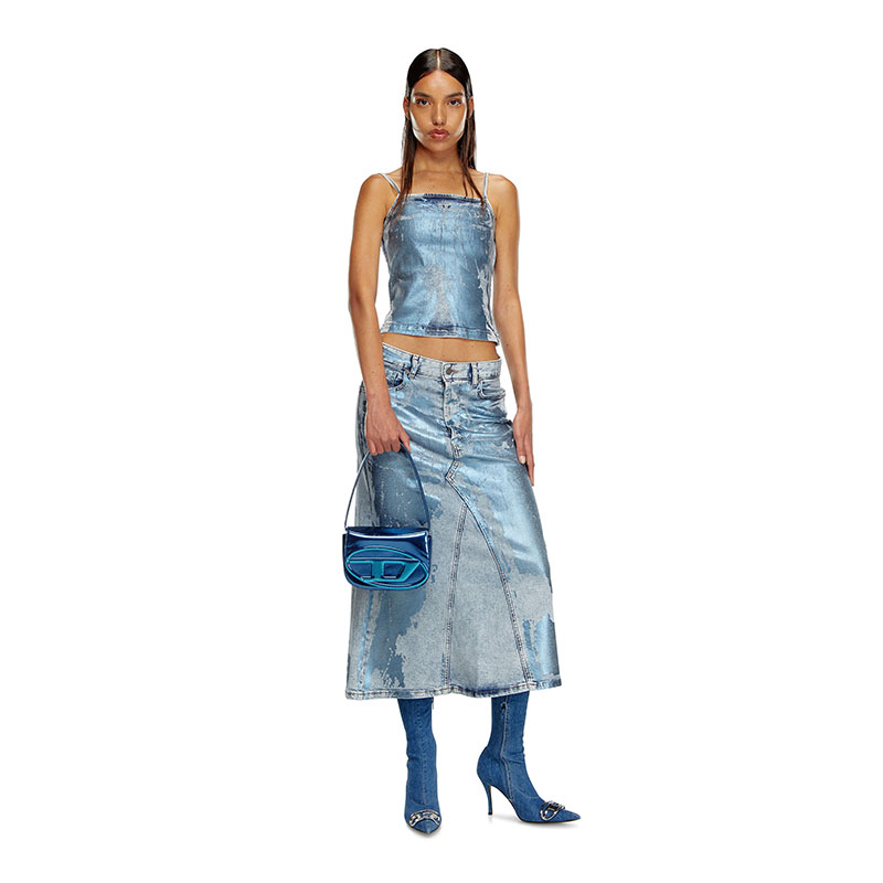 Diesel Women 1DR-Iconic shoulder bag in mirrored leather Blue X08396PS202