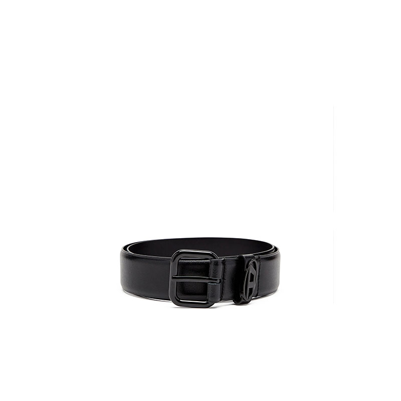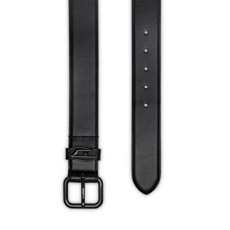 An all-gender design, this black belt is crafted from high-quality leather and fastens with a polished silver-tone buckle. Note the metal Oval D plaque embellishing the loop.