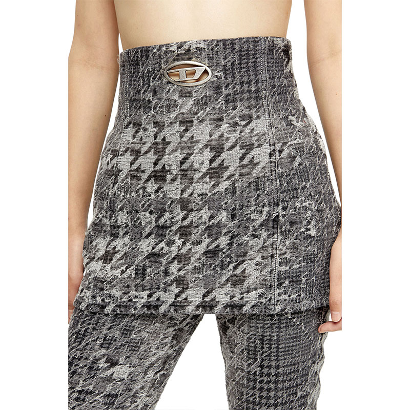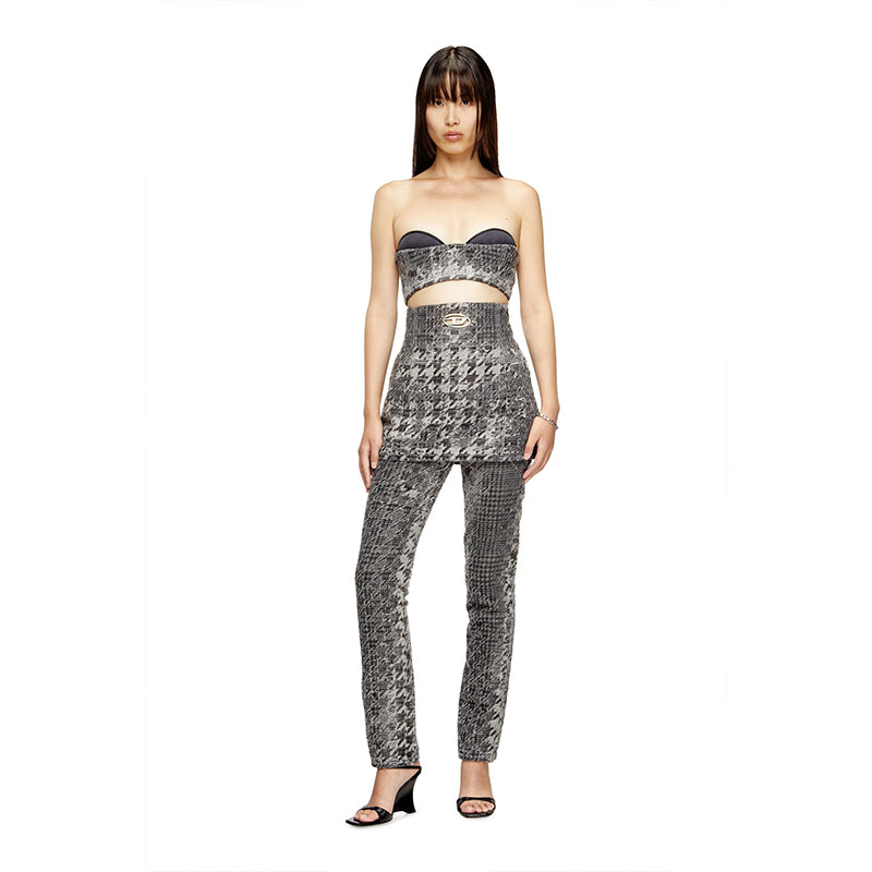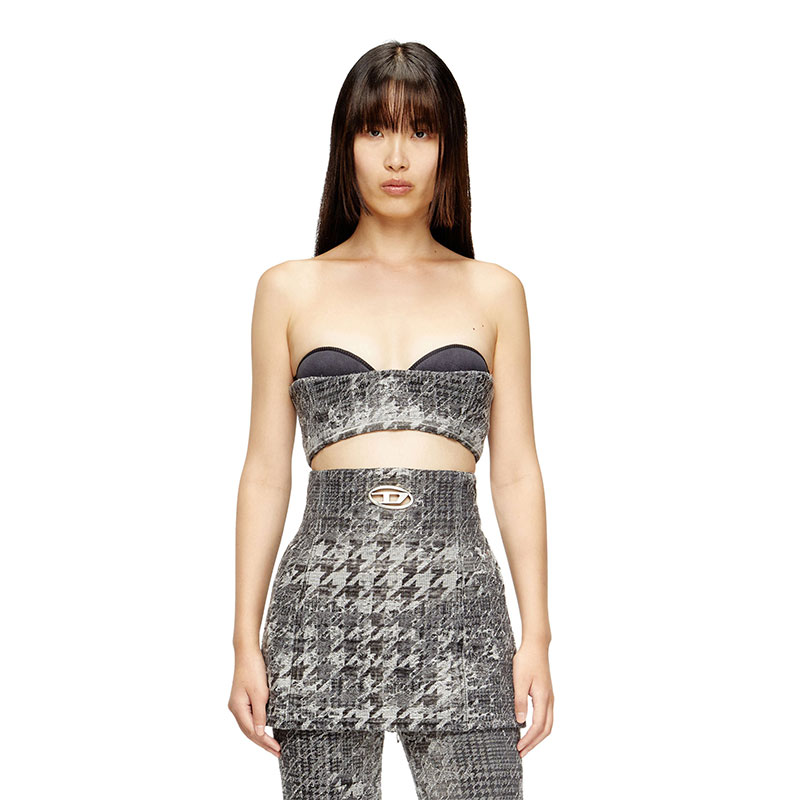 Diesel reimagines a sartorial silhouette through extreme proportions and artisanal textures. Detailed with a cut-out metal Oval D plaque, this peplum top covers the ribcage and hugs the hips.