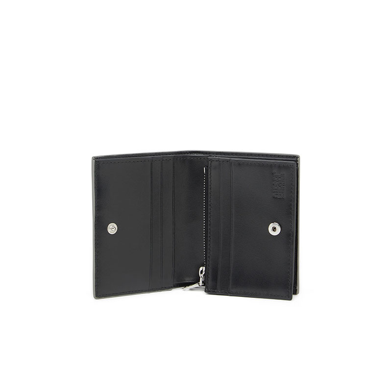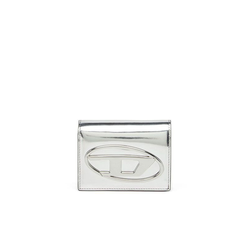 This women's compact wallet gleams with metallic shine. Crafted from responsibly sourced leather with a mirror finish, it has a snap-fastening bi-fold design equipped with a coin pocket and multiple card slots. Iconic Oval D hardware embellishes the front.
