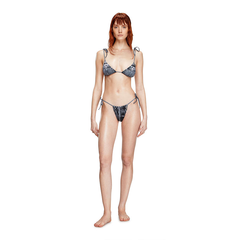This women's bikini bottom features a cool trompe l'oeil effect: it's printed to look like a pair of jeans in a faded grey wash. Embellished with a dangling Oval D logo charm, they're made from recycled stretch fabric and have slim ties at the sides.