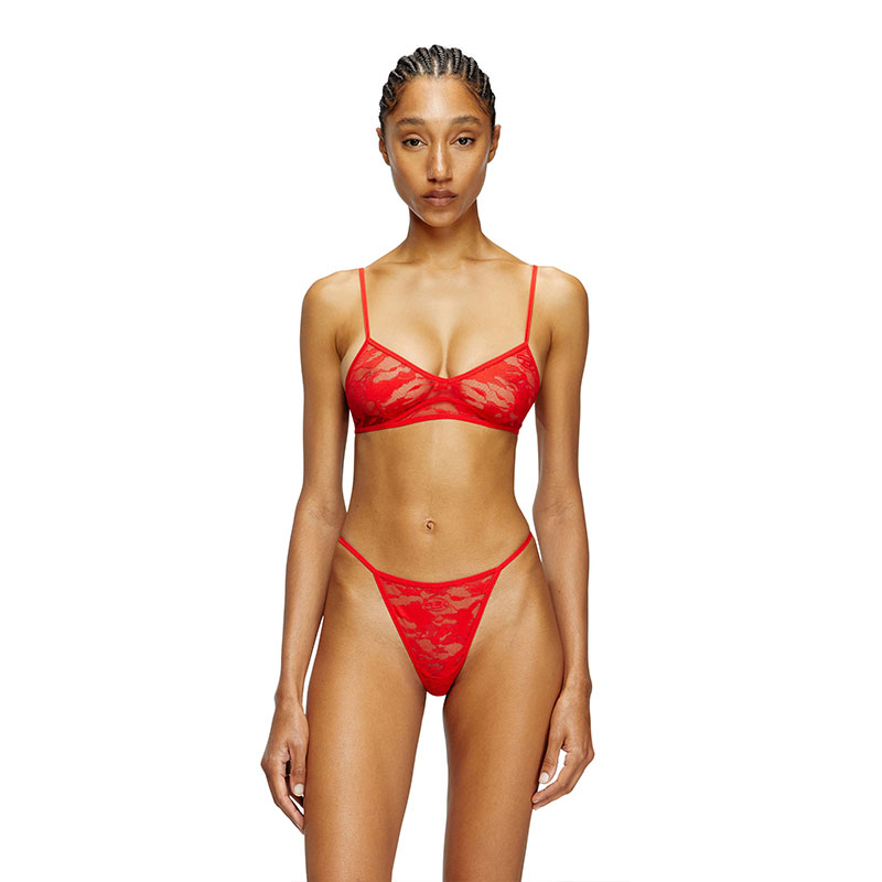 A tonal Oval D graces the left cup of this women's bra in stretch lace. The camo pattern echoes an urban attitude.